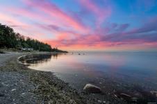 YOUR BEACHFRONT ESCAPE AWAITS! Imagine 0.30 acres of peaceful coastal paradise on a quiet no-through road, just steps from sandy shores with ever-changing ocean and mountain views. Watch the tides, seabirds, ducks, and even the Powell River ferry as part of your daily seaside scene. A cozy 2-bedroom, 1-bath cabin with quartz counters and woodstove makes the perfect vacation getaway or full-time retreat, with a private firepit by the water for magical evenings under the stars. Significant preparatory work has been completed, including the registration of covenants on title and completion of CHIP requirements, steps that lay the foundation for future expansion or a potential new home. Recent upgrades include a replaced waterline, new skirting, and gravel for drainage. Just 5 minutes to downtown Comox, this rare property blends immediate enjoyment with the opportunity to plan your own seaside vision in one of the Comox Valley’s most picturesque neighborhoods.