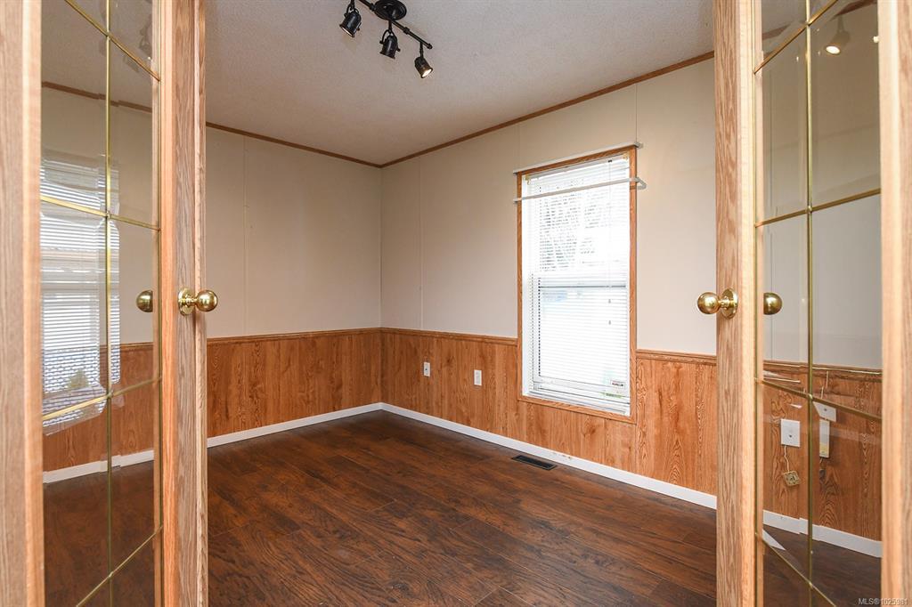 Unit 2 is a large double wide with 2 bedrooms and a versatile den that can serve as a third. The primary bedroom is spacious with a wall to wall closet and a large 4 piece ensuite. The open floor plan means there is loads of room for guests and entertaining. Outside there is a comfortable side deck off the entrance and a shed for all outdoor tools. The backyard abuts the park and forest on Muir Rd, affording loads of privacy and nature at its door.