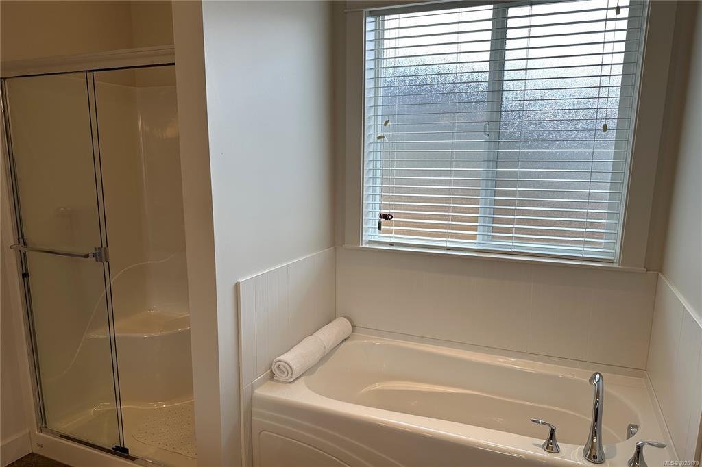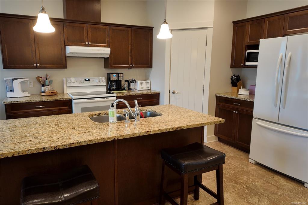 Here is a stand-alone detached patio home in one of Campbell River's most desirable patio home communities. This spacious 3 bedroom 2 bathroom home is tastefully finished, beautifully maintained, and features wide doors and hallways and an open kitchen and great room concept. You have a corner pantry and granite counters in the kitchen, which is open to the dining and living room with gas fireplace and French doors that lead to the large covered patio in the fully fenced private back yard. The primary bedroom has his & hers walk thru closets and a luxurious 5-piece ensuite with separate tub & shower. High 9 foot ceilings and a double garage top off this wonderful home, and bare land strata keeps your monthly fees low. Ready for a quick possession.