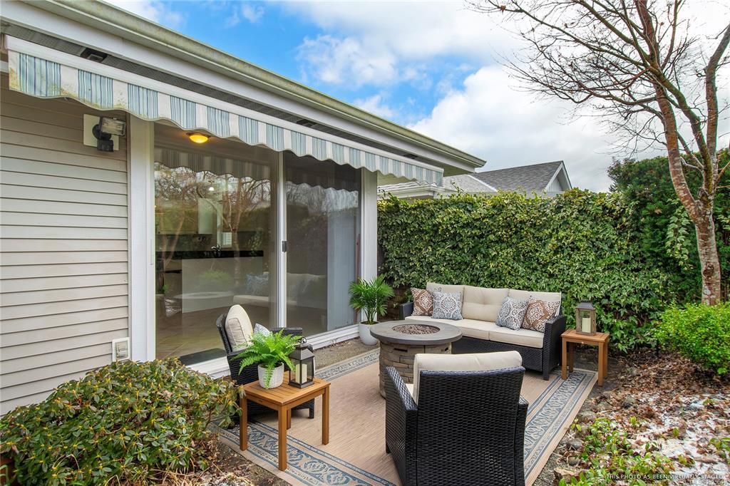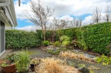 Welcome to Stratford Gate! This beautifully updated 2-bedroom, 2-bathroom patio home offers 1,178 sq ft of comfortable, low-maintenance living in a sought-after gated 55+ community. Freshly painted throughout, the home features a bright open kitchen with stone countertops and stainless steel appliances, flowing seamlessly to a very private outdoor patio surrounded by stunning Japanese gardens—your own peaceful retreat. The inviting living room showcases an eye-catching gas fireplace and opens to the dining area, creating a warm and functional space for everyday living and entertaining.