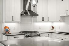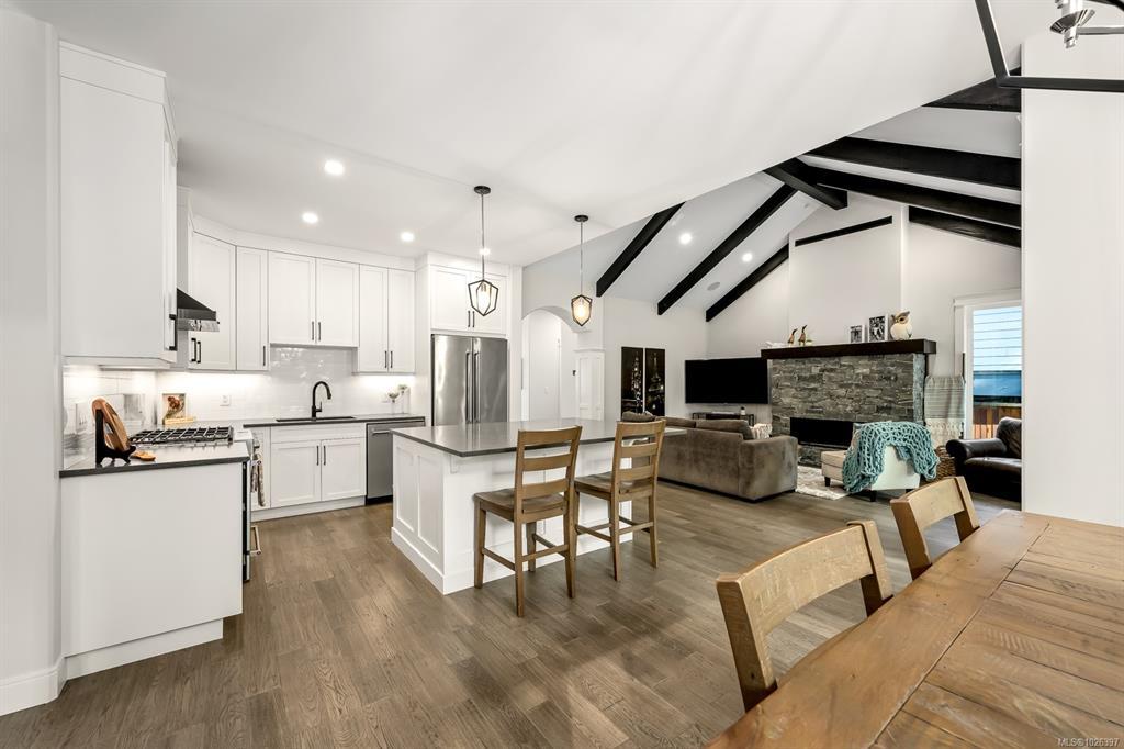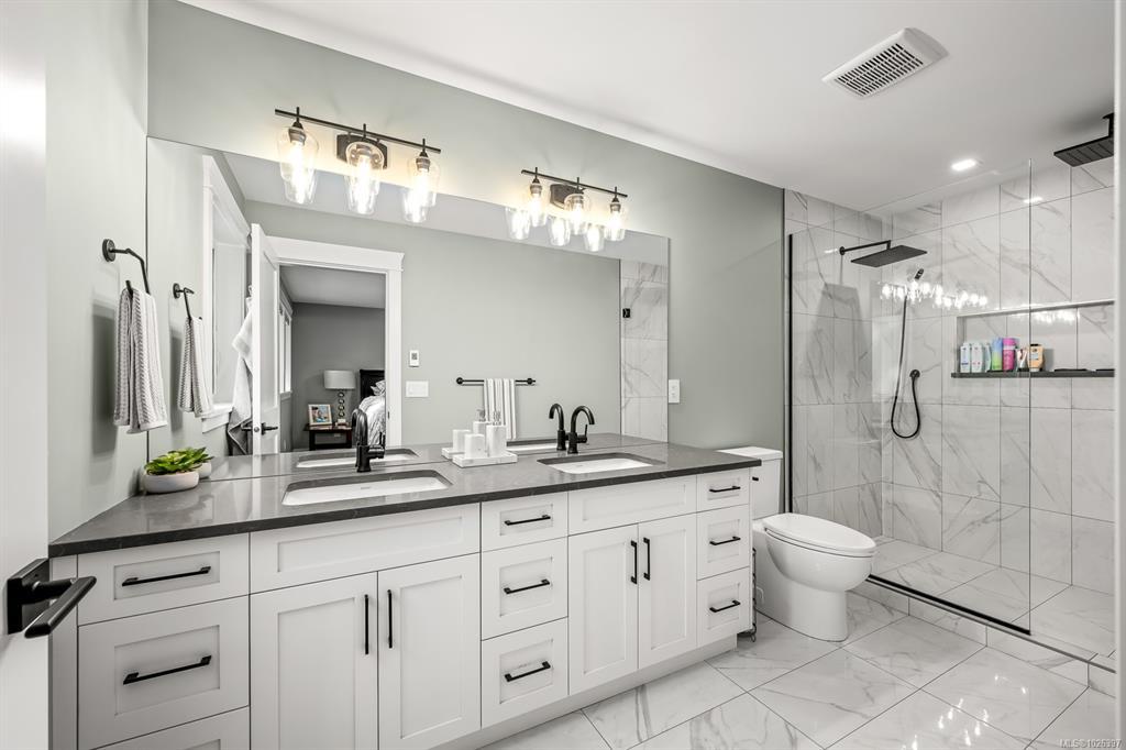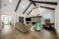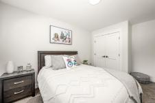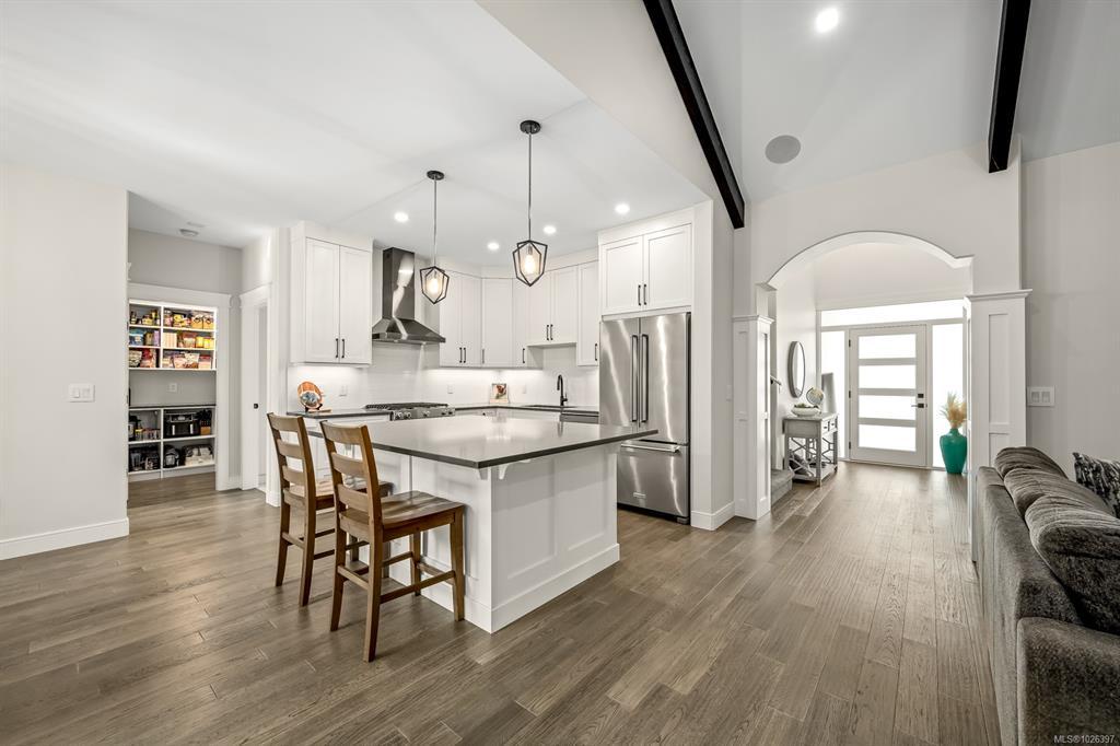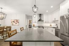 Your dream home awaits in this stunning 1927 sqft residence built in 2021 and backing onto peaceful green space for added privacy. The bright open concept main floor features vaulted ceilings in the living room and large windows that fill the home with natural light. The kitchen offers quartz countertops quality cabinetry and a spacious island that flows seamlessly into the dining and living areas and out to the covered patio perfect for entertaining. Upstairs you will find three generous bedrooms including a beautiful primary suite with walk in closet and spa inspired ensuite with custom tile shower. A versatile lower level den provides space for a home office gym or playroom. This turnkey home blends modern style comfort and thoughtful design throughout.