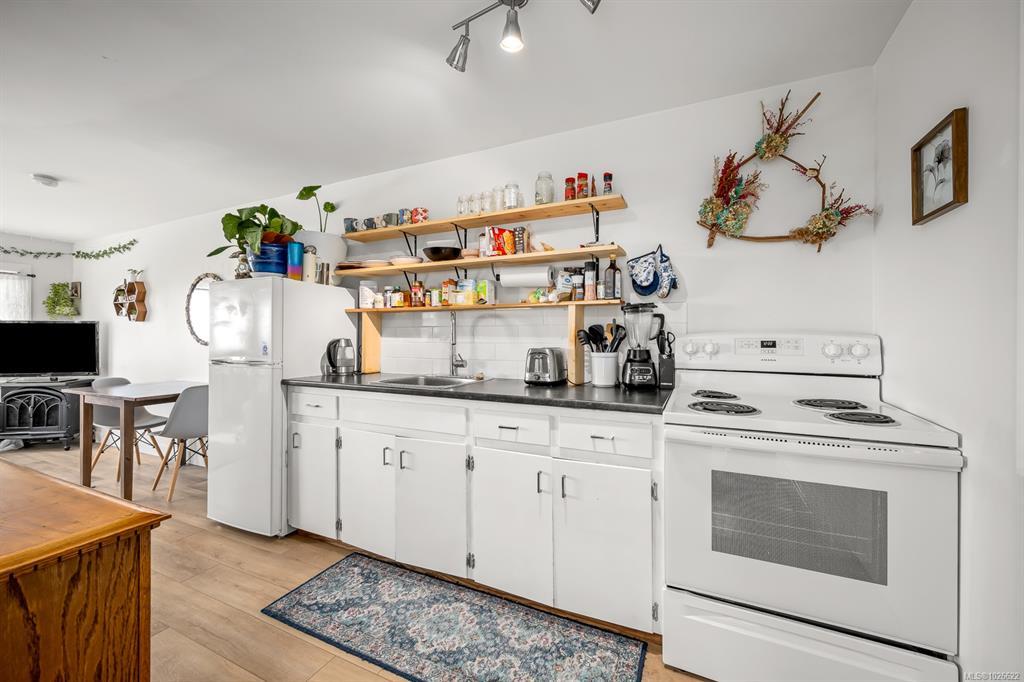 Extensively updated home with a legal suite in an unbeatable location. This bright and modern property offers a 2-bed/1-bath main level plus a 1-bed/1-bath upper suite with separate exterior access, private balcony with ocean views and separate hydro. The flexible layout is well-suited for extended family, guests, or supplemental income. Updates completed in recent years include roof, updated windows, skylights, kitchen with quartz countertops, bathrooms, flooring, insulation and more. Step through French doors to your deck overlooking a fully fenced, landscaped yard with fruit trees and garden beds. Millard Park is across the street, with walking trails, nearby amenities, and ocean access for kayaking or paddleboarding steps away. Spacious driveway, garage and workshop offer storage for your toys and space for hobbies. Private, versatile and move-in ready, this property offers flexibility for multigenerational living or rental income in this highly sought-after oceanside location.