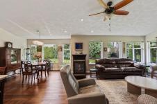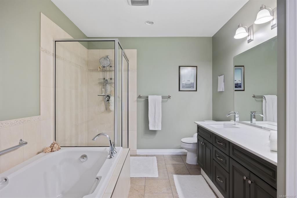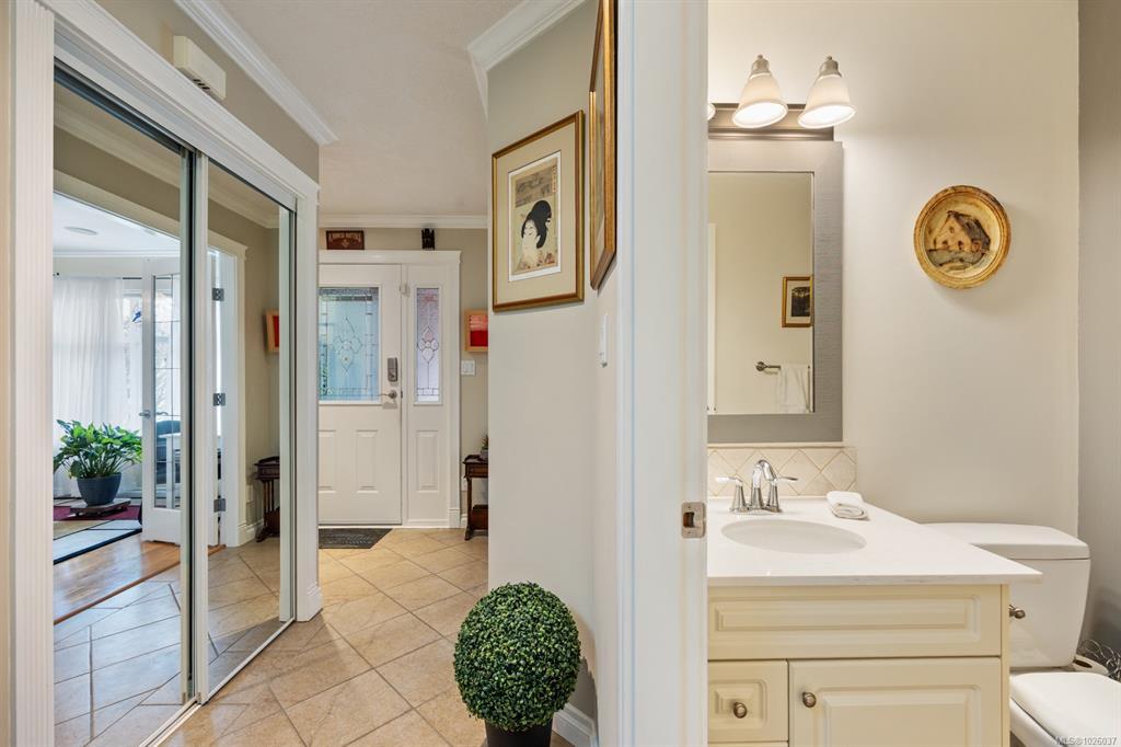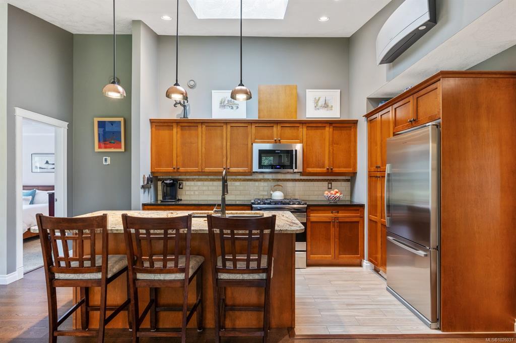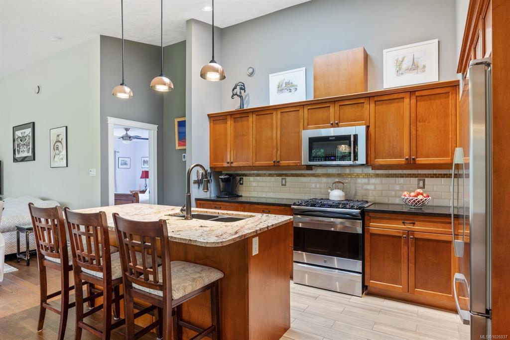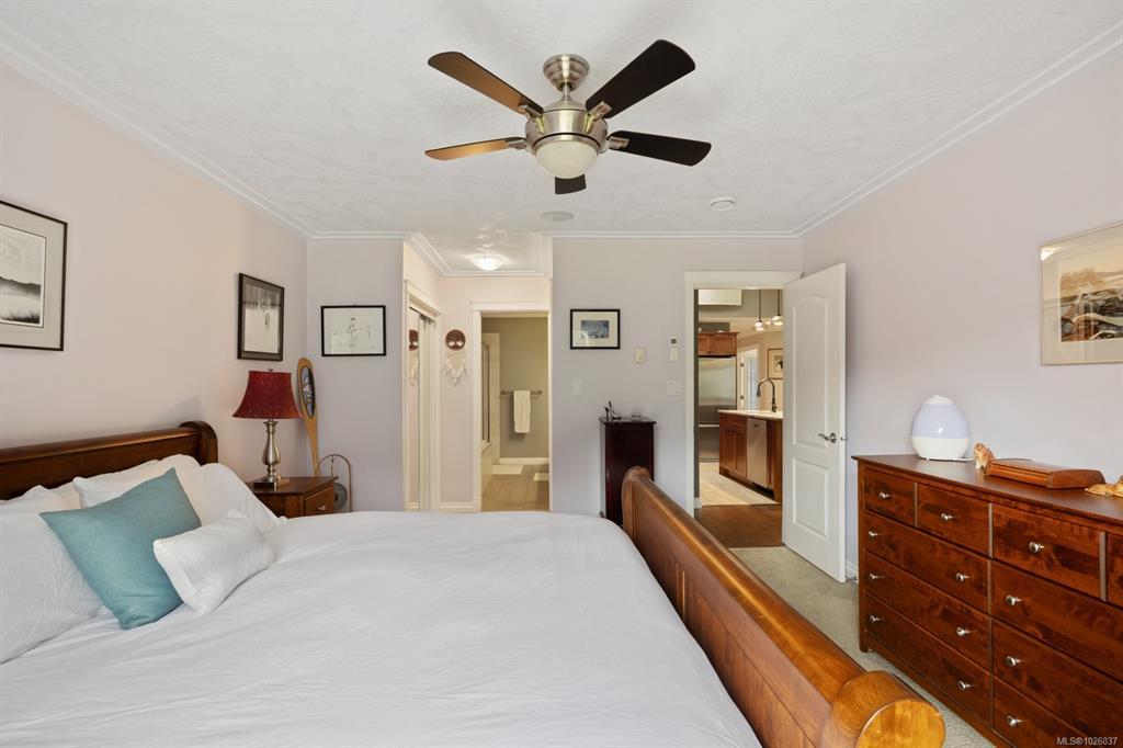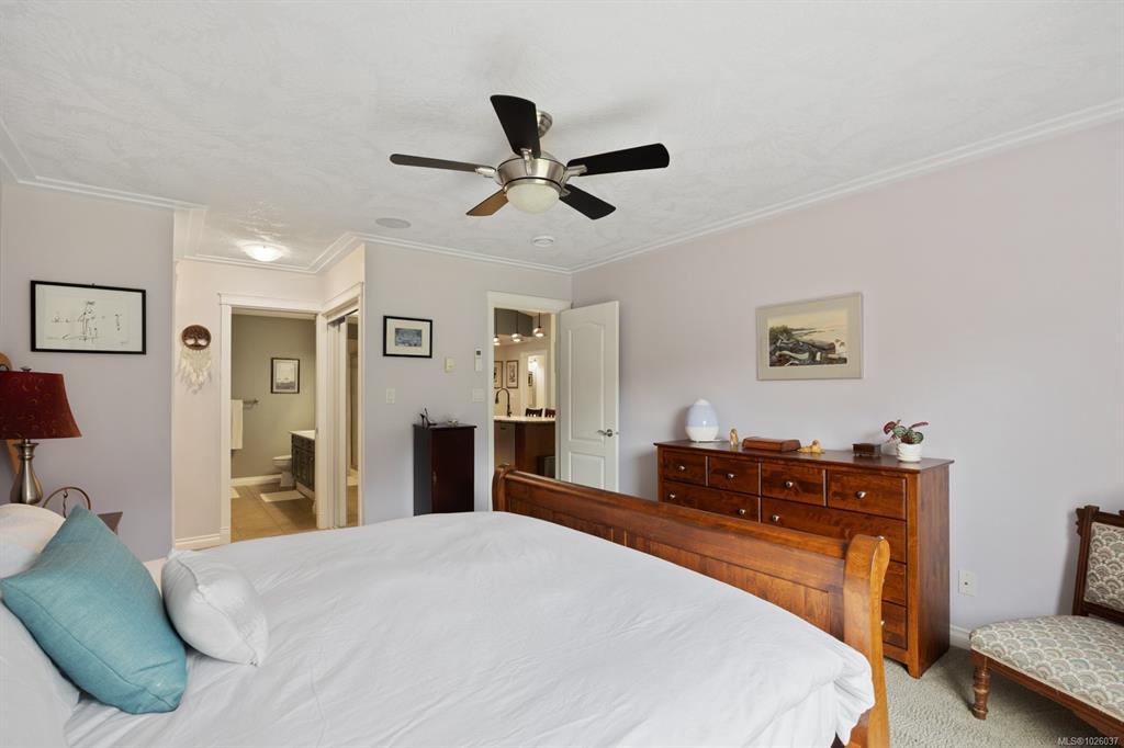 Welcome to River Glen. This rare, meticulously maintained & updated 3 bed, 2 bath patio home along the peaceful Puntledge River, is a short walk to downtown Courtenay & located in the well-run, proactive, strata. No detail overlooked, this upscale patio home features 6 custom additional south facing windows, heated hardwood & tile floors, new HRV system, new heat pump, new roof, new hot water tank, high-end appliances, & fresh paint throughout. Open concept kitchen with granite counters. Vaulted ceilings for a bright, open feel, while a 3 sided gas fireplace anchors the living space. The well designed floor plan provides separation & privacy for all bedrooms. Updated sinks, faucets, & quartz counters in bathrooms. The primary ensuite includes a walk-in shower, soaker tub, & generous closet space. An extended sliding door opens to a spacious patio spanning the primary bedroom to the living room. Complete with gas BBQ hookup, sprawling green lawn, southern exposure & excellent privacy.