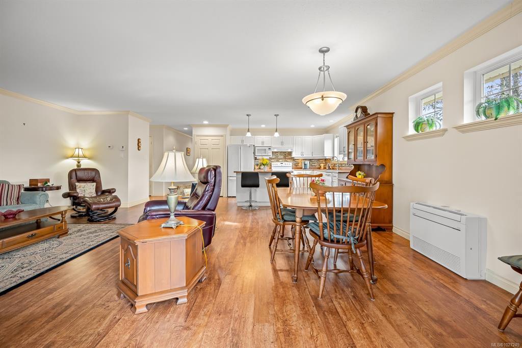 Located in the heart of Comox, this well maintained 1,561 sq ft rancher, built in 2007, offers comfortable one level living. The bright, functional layout features crown mouldings in the main living areas and a cozy gas fireplace. The spacious primary bedroom includes a walk in closet and a 3 piece ensuite. Stay comfortable year round with two mini split heat pumps and a gas hot water tank (2024). All appliances are included for added convenience.
