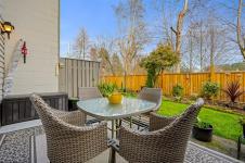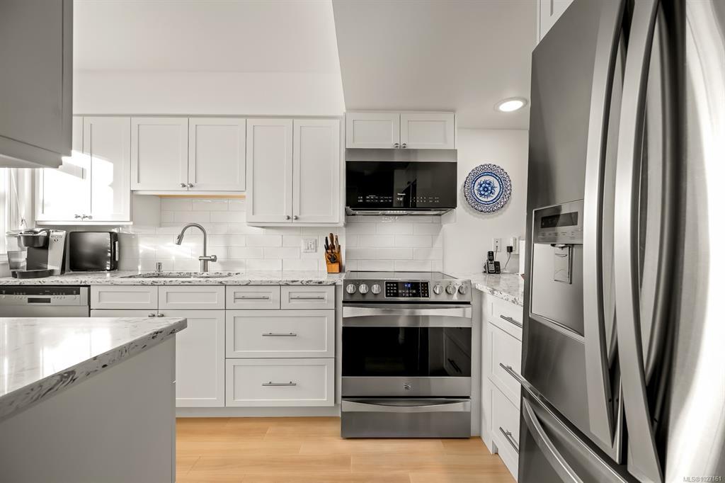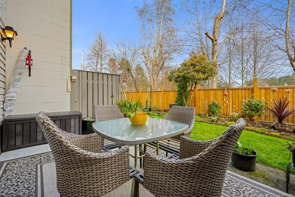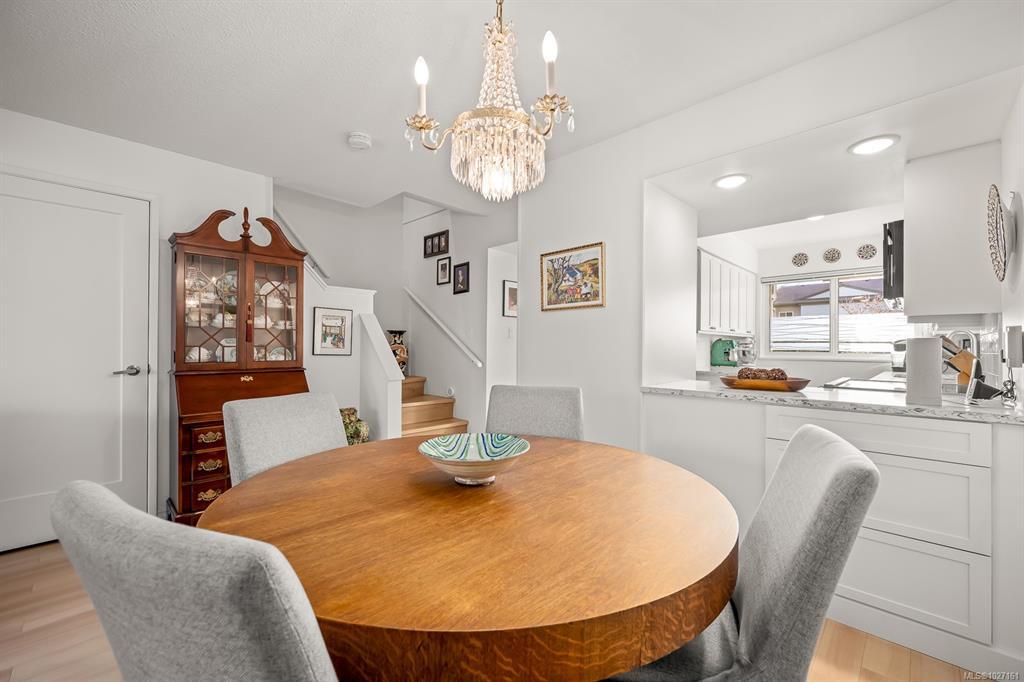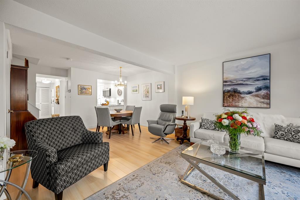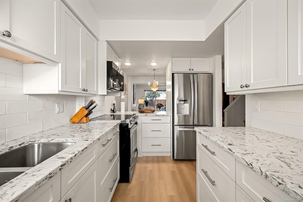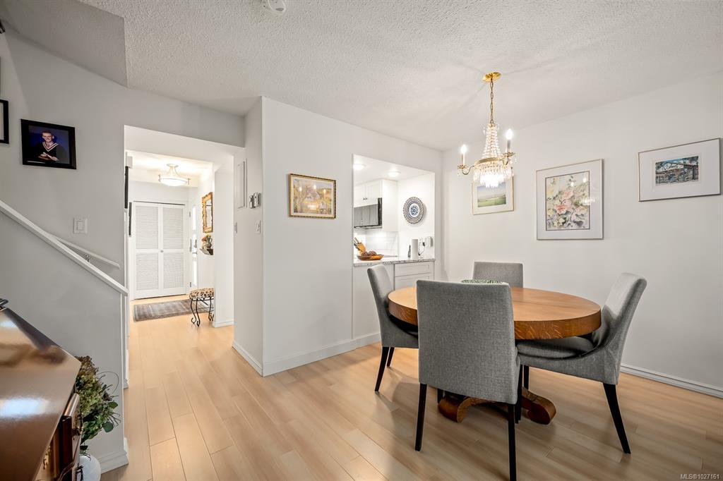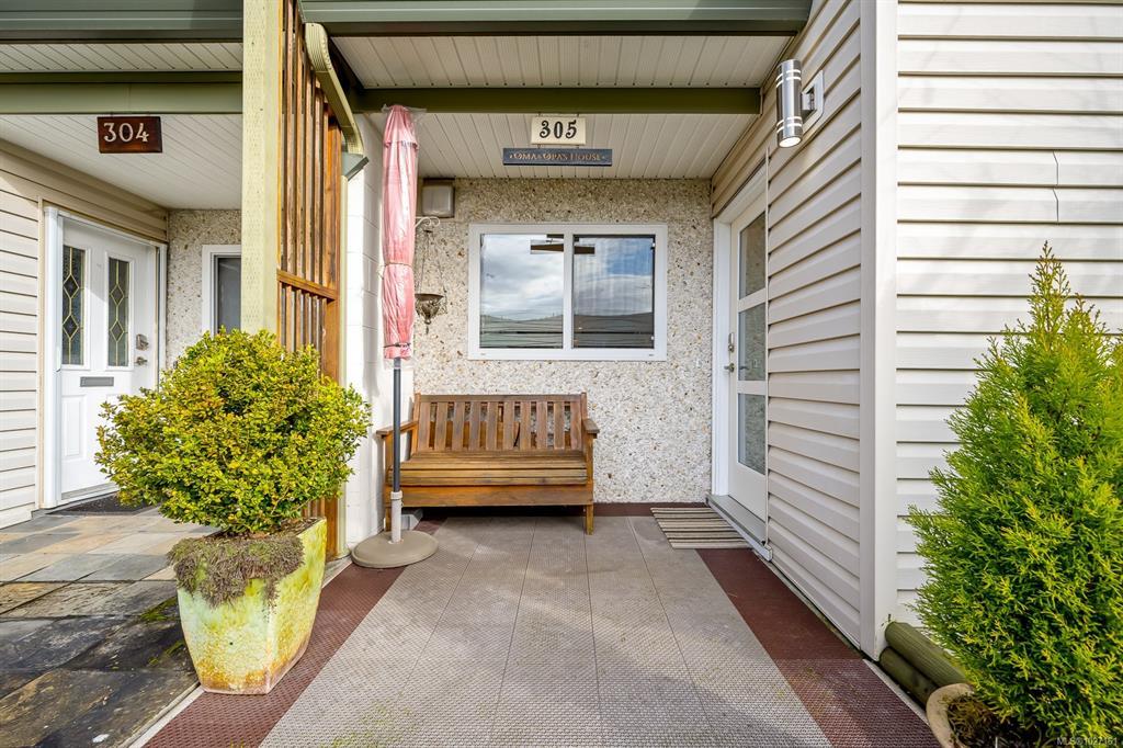 Beautifully updated 2 level townhome in central Comox is immaculate & move-in ready. The main level features hardwood laminate floors with an open plan living/dining room warmed by gas fireplace with large windows & sliding door opening to your lovely private garden & nature behind. The bright galley kitchen features newer stainless steel appliances, quartz countertops, shaker cabinets and tile backsplash – culinary inspiring. Upstairs has 3 bedrooms, including large primary bedroom, & a 2nd bathroom – all fully updated. #305 is ready to just move in and relax! Located in the highly sought after Brook Place community residents enjoy mature landscaped grounds and a welcoming outdoor pool nestled in its central courtyard. All of this just steps to parks, golf, & everyday amenities offering a walkable lifestyle in one of the areas most desirable neighborhoods. This amazing & rare opportunity is a must see – book your showing today!