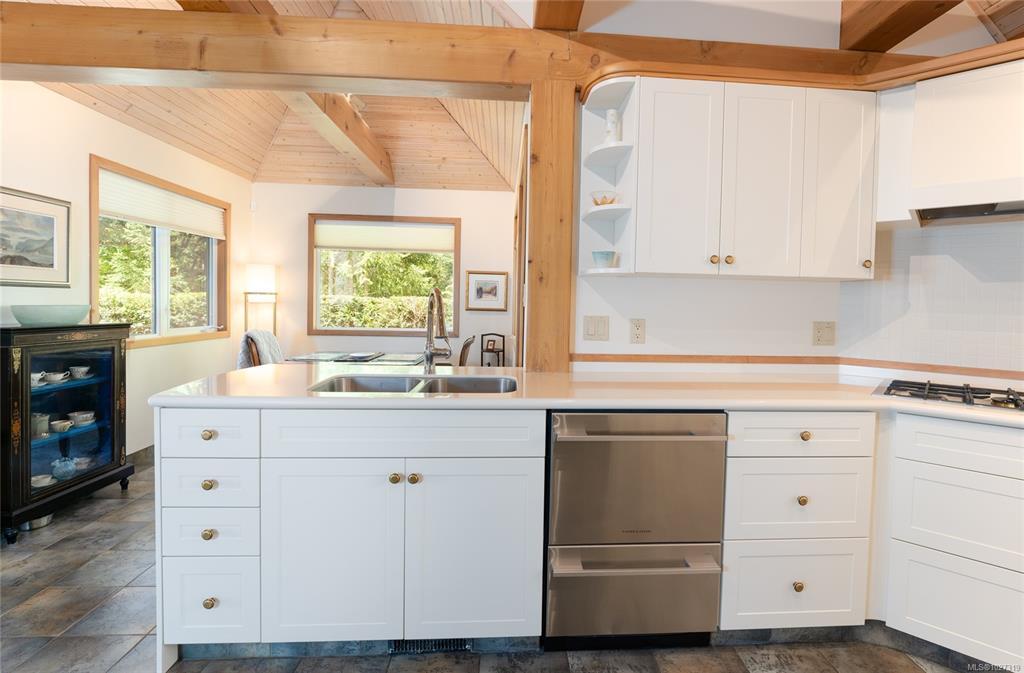 Enjoy spectacular views of Samsum Narrows from this south facing, spacious, and meticulously upgraded West Coast property. Ideal for buyers who appreciate quality craftsmanship, post and beam construction offered at exceptional value, well below replacement cost. Backing on to the Channel Ridge Park Reserve with hiking trail access, this hillside 4,000~ sq ft home has undergone extensive & thoughtful upgrades. Fenstur triple-paned windows, high-efficiency heat pump, & a fire-resistant EnviroShake Roof with a lifetime warranty for future-focused living. Vaulted ceilings & expansive windows enhance an elegant livable floor plan. The bright walkout lower level, with 9 ft ceilings provides space for guests, media areas, office needs or multigenerational living options. A private deck and glass covered atrium patio are designed for outdoor entertainment and the heated garage workshop can be used as a studio. This well-priced elegant home is move-in ready & conveniently located.