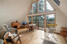 Welcome to your own peaceful sanctuary. This charming A-frame home is perfectly positioned to capture breathtaking views through expansive double-pane windows that flood the space with natural light. A sliding glass door opens onto a spacious deck, the ideal place to sip your morning coffee while overlooking the stunning 274-ft pond and surrounding natural beauty. The pond serves as a thriving bird sanctuary, home to sandhill cranes, swans, kingfishers, herons, and many other birds. Every season brings a new view and a new soundtrack of nature.