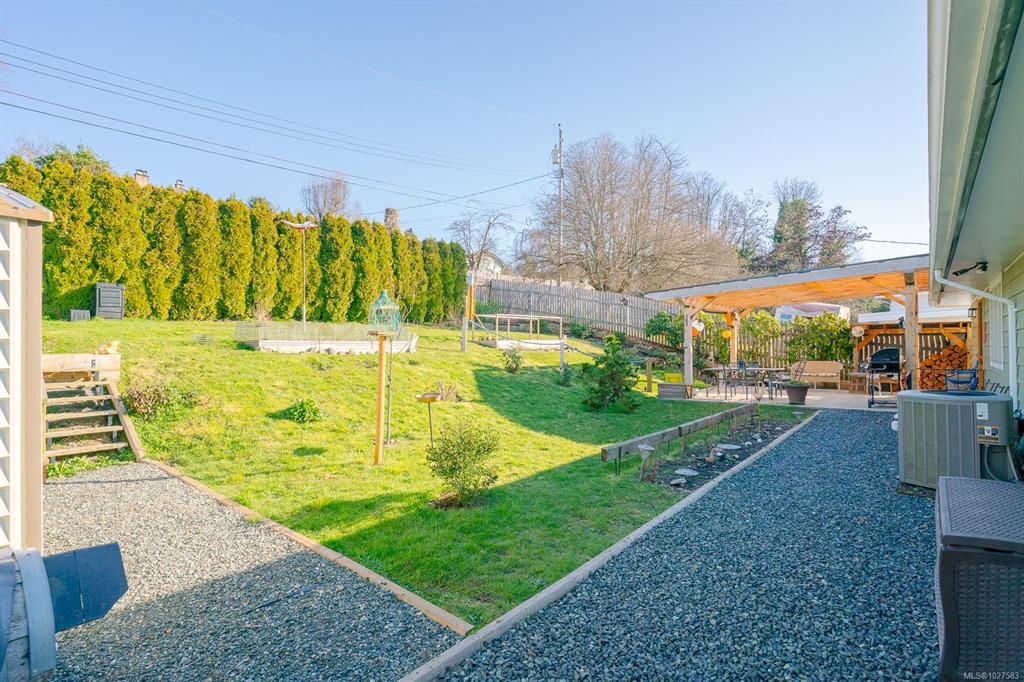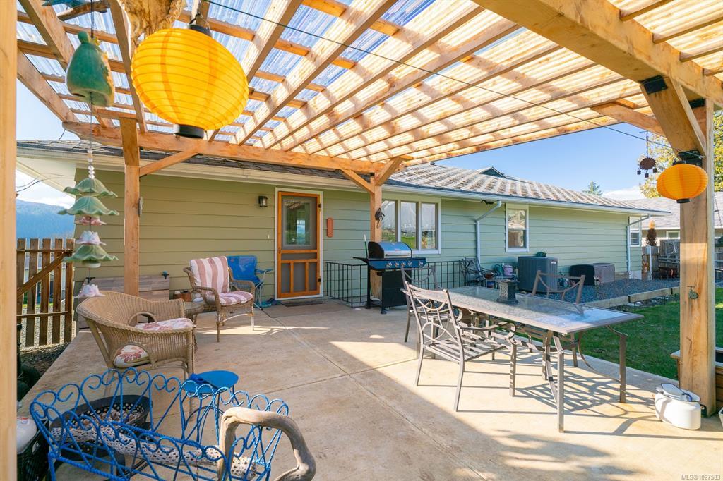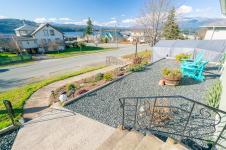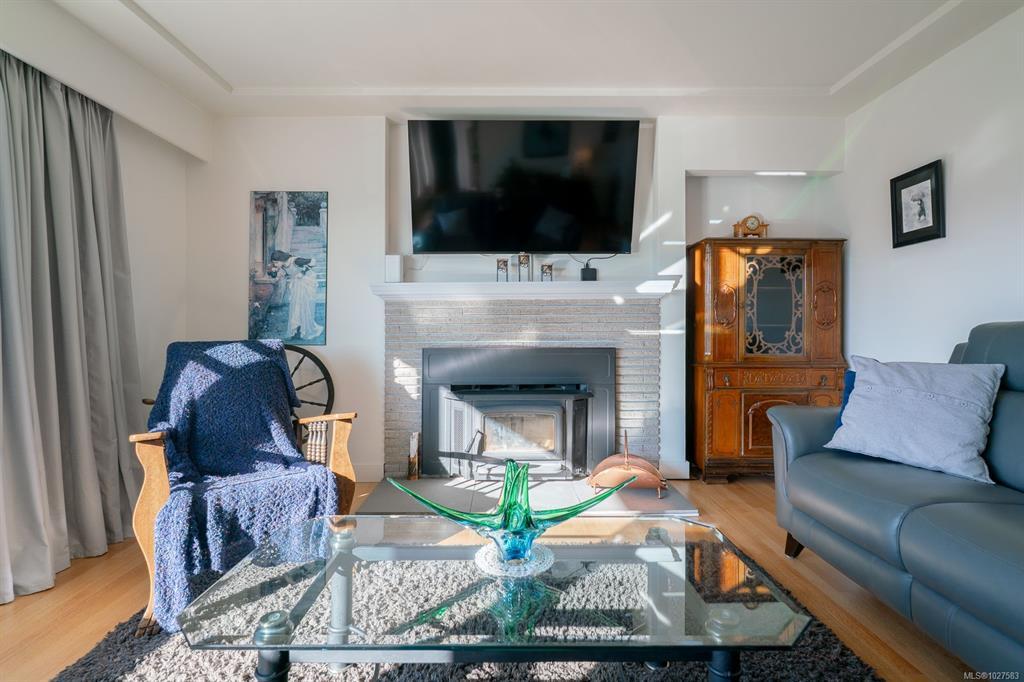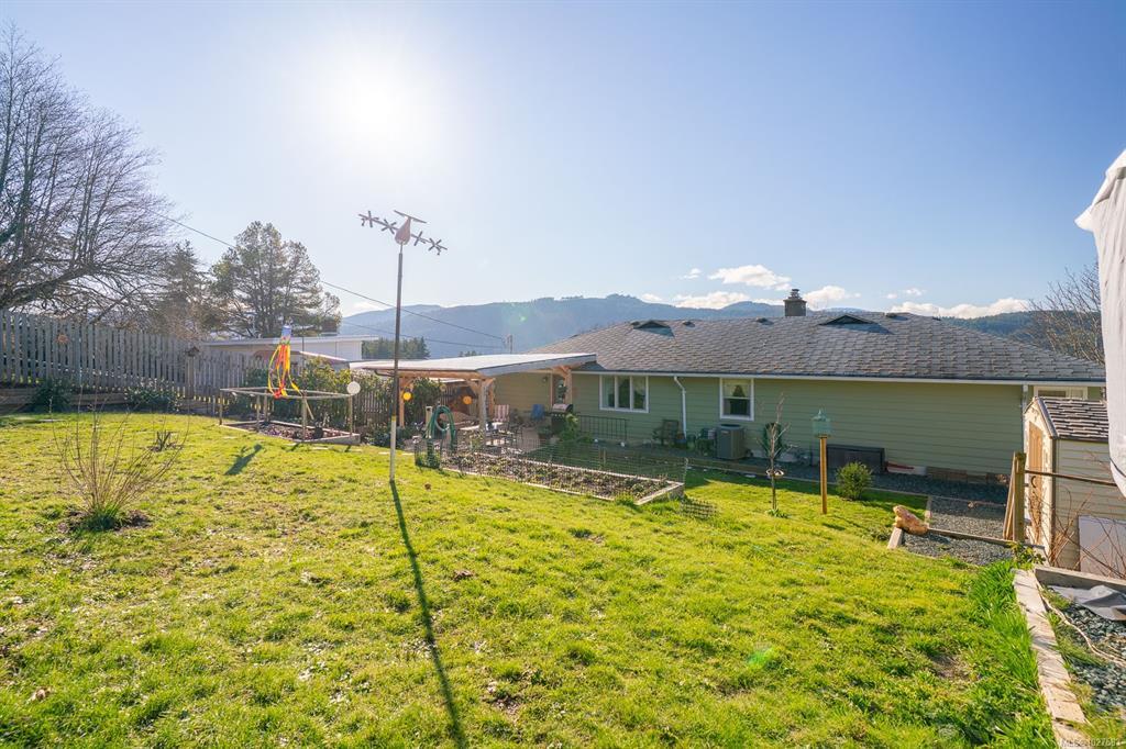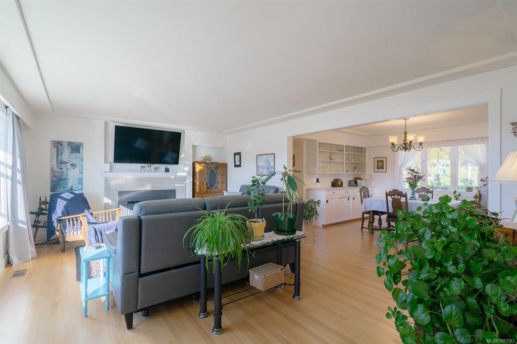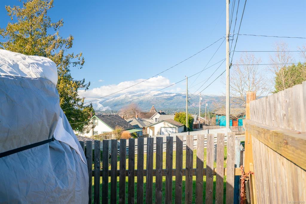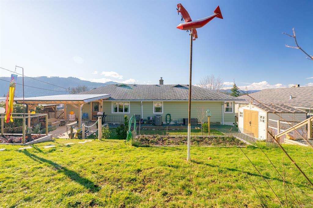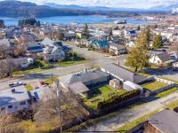 Beautifully renovated 4 Bed, 2 Bath character home in Port Alberni offering over 2,000 sq ft with stunning ocean and mountain inlet views. Step inside to warm hardwood flooring and a sunlit living room anchored by a wood-burning fireplace, positioned to capture the views. The space flows into the formal dining room with built-in cabinetry. The updated kitchen features quartz countertops, stainless appliances, skylight, large island with seating, and direct access to the patio and pergola—ideal for outdoor living. Three bedrooms and a spacious main bath with soaker tub and walk-in shower complete the main level. Downstairs offers a cozy flex space with gas fireplace, fourth bedroom, and generous storage/workshop area. Newer vinyl windows, upgraded insulation, new roof, heat pump with gas furnace backup, A/C, double attached garage, and built-in vacuum. The .22 acre property includes a fenced garden area, secure RV parking, raised beds, berry bushes, and shed. Meas. approx.