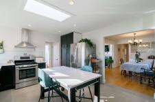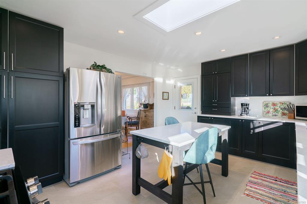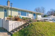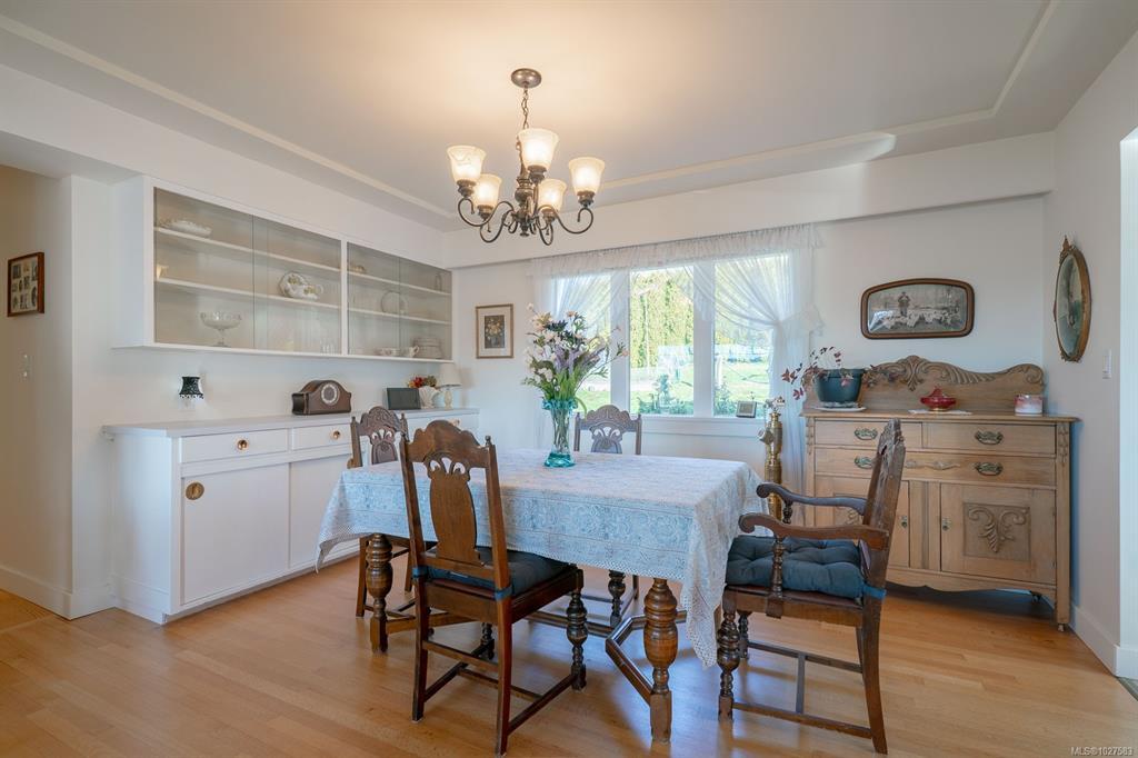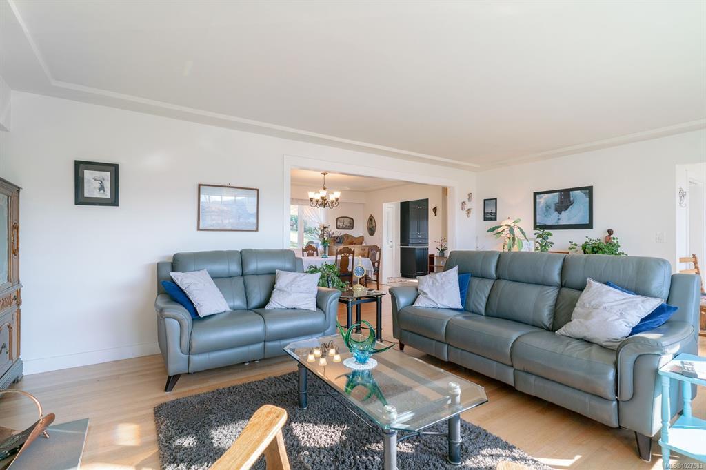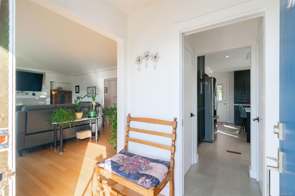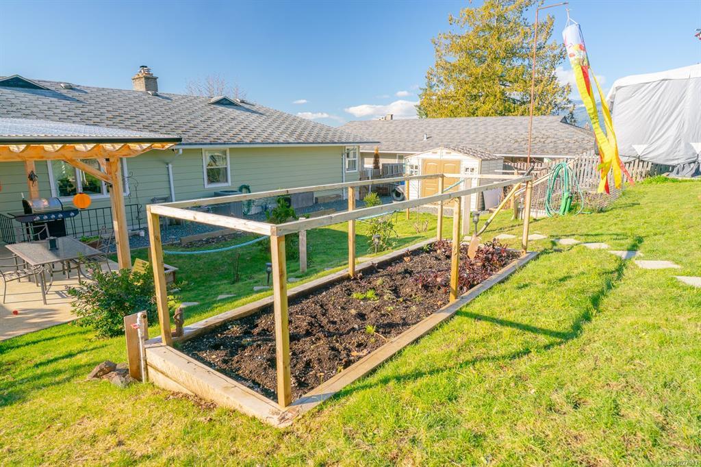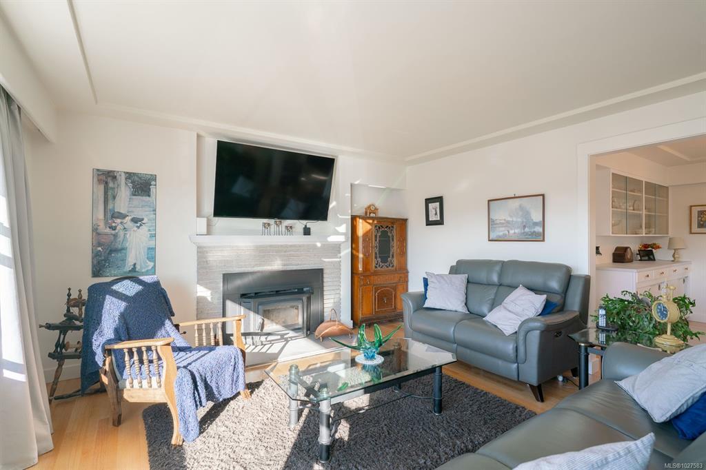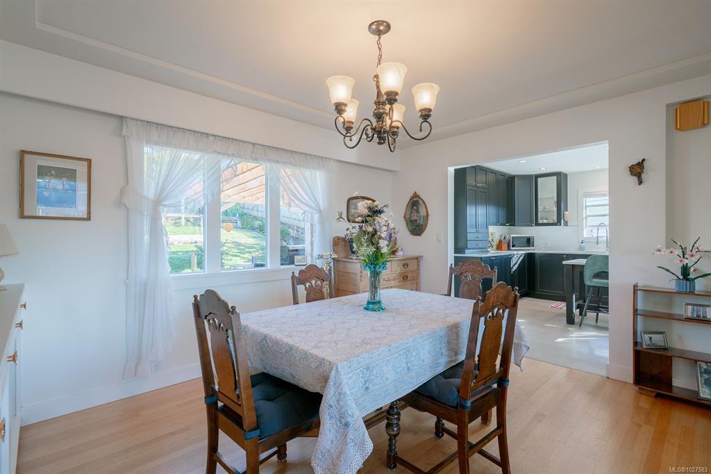 Beautifully renovated 4 Bed, 2 Bath character home in Port Alberni offering over 2,000 sq ft with stunning ocean and mountain inlet views. Step inside to warm hardwood flooring and a sunlit living room anchored by a wood-burning fireplace, positioned to capture the views. The space flows into the formal dining room with built-in cabinetry. The updated kitchen features quartz countertops, stainless appliances, skylight, large island with seating, and direct access to the patio and pergola—ideal for outdoor living. Three bedrooms and a spacious main bath with soaker tub and walk-in shower complete the main level. Downstairs offers a cozy flex space with gas fireplace, fourth bedroom, and generous storage/workshop area. Newer vinyl windows, upgraded insulation, new roof, heat pump with gas furnace backup, A/C, double attached garage, and built-in vacuum. The .22 acre property includes a fenced garden area, secure RV parking, raised beds, berry bushes, and shed. Meas. approx.