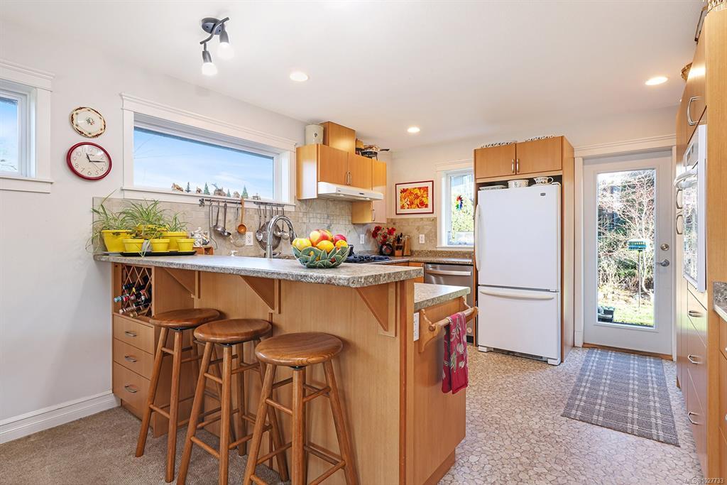 Desirable Lancaster Estates in Comox. This home has been well-cared-for and features a legal self contained 1-bedroom suite with separate access, parking, and patio. Upstairs offers three bedrooms and two bathrooms, views of the Beaufort Mountains, and access to a rear patio with a private fenced backyard featuring several fruit trees, perennial beds, and a hot tub. Close to amenities and a great trail system, and only a short walk to Aspen Elementary makes the location ideal. The home is economical to run and features two gas fireplaces, gas stoves, heat pump with air conditioning, and on-demand hot water. The mortgage helper is an asset making this property stand out in the market.