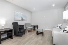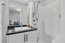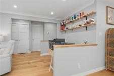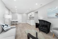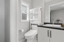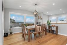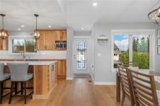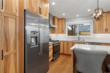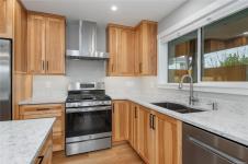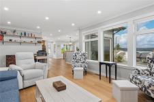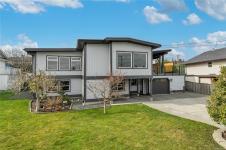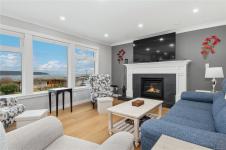 Perched to capture breathtaking ocean and mountain views, this exceptional 2,821 sqft residence blends modern luxury with incredible functionality.. Rebuilt in 2022, the 4-bedroom, 5-bathroom home blends timeless elegance with modern sophistication. The upper-level living space is designed to showcase panoramic vistas, with expansive windows flooding the home in natural light. A beautifully appointed gourmet kitchen features quartz countertops, hickory cabinetry, SS appliances, under-cabinet lighting, and an oversized island—perfect for entertaining. The open-concept living and dining areas extend to a 600 sqft partially covered deck, creating year-round indoor-outdoor living, while a gas fireplace adds warmth and ambiance. Each bedroom offers a private ensuite providing comfort and privacy for family and guests. The lower level offers excellent in-law suite potential with a kitchenette, spacious rec room, two ensuite bedrooms, and separate laundry—ideal for multi-generational living.