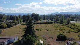 5.6 acre development property within the city of Courtenay. Located adjacent to the Vanier High School grounds with frontage of approximately 475” along Headquarters Rd. Zoning is the new R-SSMUH (Residential Small Scale Multi Use Housing), with the principal uses being “Single Family”, “Duplexes” and “Townhouse dwelling”. Municipal water and Sewer are now servicing the single family ranch style home on the property. Additional improvements include a Shop/Barn 24’ x 40’, Storage 12’ x 20’ and a Hay/Barn 12’ x 16’. The home is light, bright and comfortable with nice decking overlooking the lands and mountains to the west. This is a nice site, close to many of the facilities offered by the City including the Exhibition grounds, Curling rink and Lewis Park. Sellers are open to creative thinking by an interested Development party.