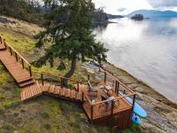 This perfectly situated private and serene oceanfront estate of 4.4 acres enjoys premium southwestern exposure on one of the most desirable locations on Salt Spring. The sun drenched setting overlooks the most fabulous ocean and island views imaginable and provides warm swimming, dramatic sunsets and the level bench at the water’s edge is the perfect spot to launch a kayak, paddleboard or explore the ocean’s edge. The immaculate one level coastal contemporary home, well presented with a stylish neutral design palette, is both comfortable and elegant having light-filled interiors which highlight the seascape backdrop. Outdoors, easy care natural landscape provides many special spots to relax and reflect including ample deck areas, flagstone patios, a covered gazebo as well as a beachfront deck. In addition, there is a workshop and studio for creative endeavors and zoning allowing a future guest cottage. Truly, a remarkable and uncommon offering.