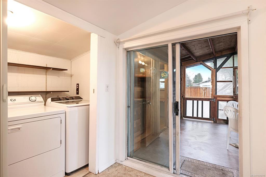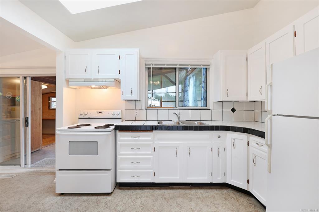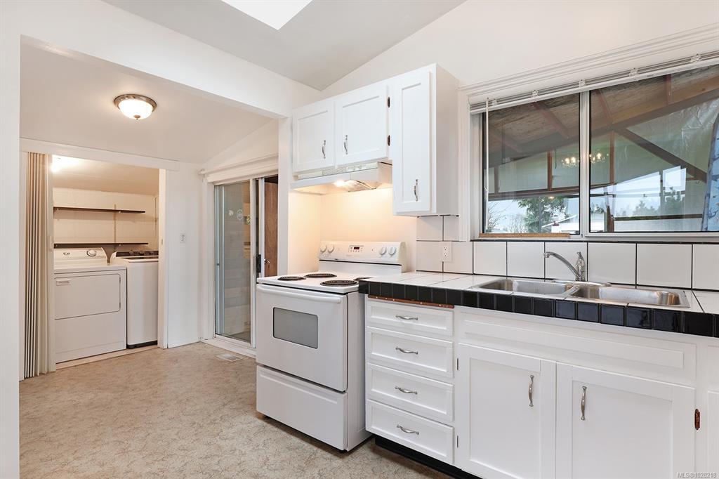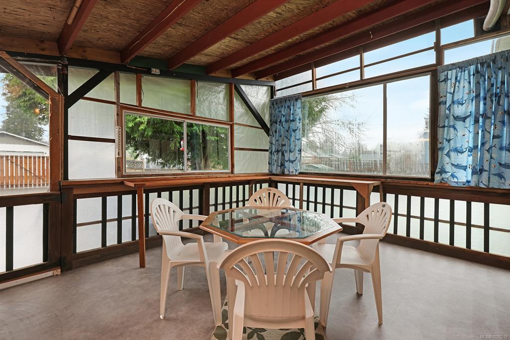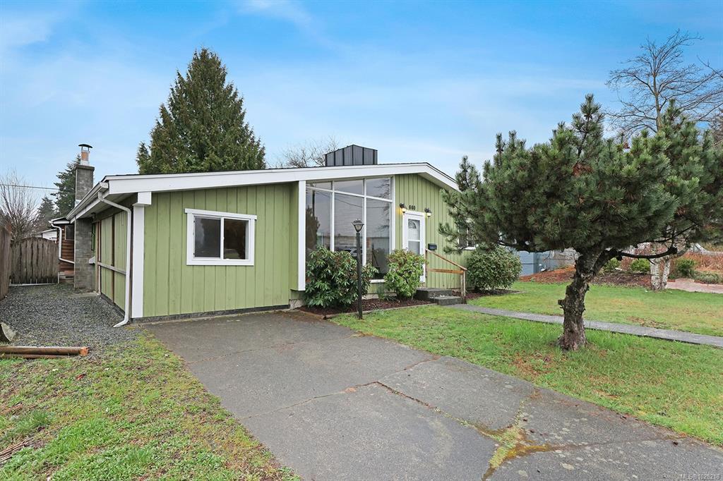 Charming rancher in a fantastic location for families or retirees. This single level home sits on a 0.18-acre lot and offers a bright open layout with vaulted ceilings and original hardwood flooring. The flexible floor plan includes 4 bedrooms, or 3 bedrooms plus a TV/family room, making it ideal for families or those needing an extra room. Outside you will find a covered deck, creating a nice three-season outdoor living area overlooking the fully fenced backyard. Rear lane access provides convenient parking and there is a small workshop off the covered patio area, perfect for hobbies or storage. The home features 200 AMP service, copper water lines, electric furnace, and the roof is approximately 5 years old. Excellent location, just across from Courtenay Elementary, a short distance to shopping and other amenities.