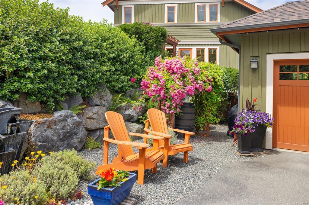 Absolutely perfect and move-in ready, this contemporary home offers stunning ocean views and a desirable location in the friendly, residential enclave of Bishop’s Green—just minutes from town. Immaculate and light-filled, the 2,083 sq ft layout spans three levels, featuring two spacious bedrooms each with their own ensuite baths. The upper-level primary suite includes a charming ocean-view veranda—ideal for morning coffee. Quality finishings throughout include a gourmet kitchen, rich wood trim and mouldings, and banks of picture windows that capture the coastal setting. The lower level offers a welcoming retreat for guests, while the professionally landscaped grounds feature natural rock walls, covered sun deck, private patios, and a storybook front porch. An attached garage and private driveway. New roof and heat pump in 2024. Ten min drive to ferries and walk to town. An exceptional opportunity for those seeking a low-maintenance, easy-care lifestyle in a “like new” view home!