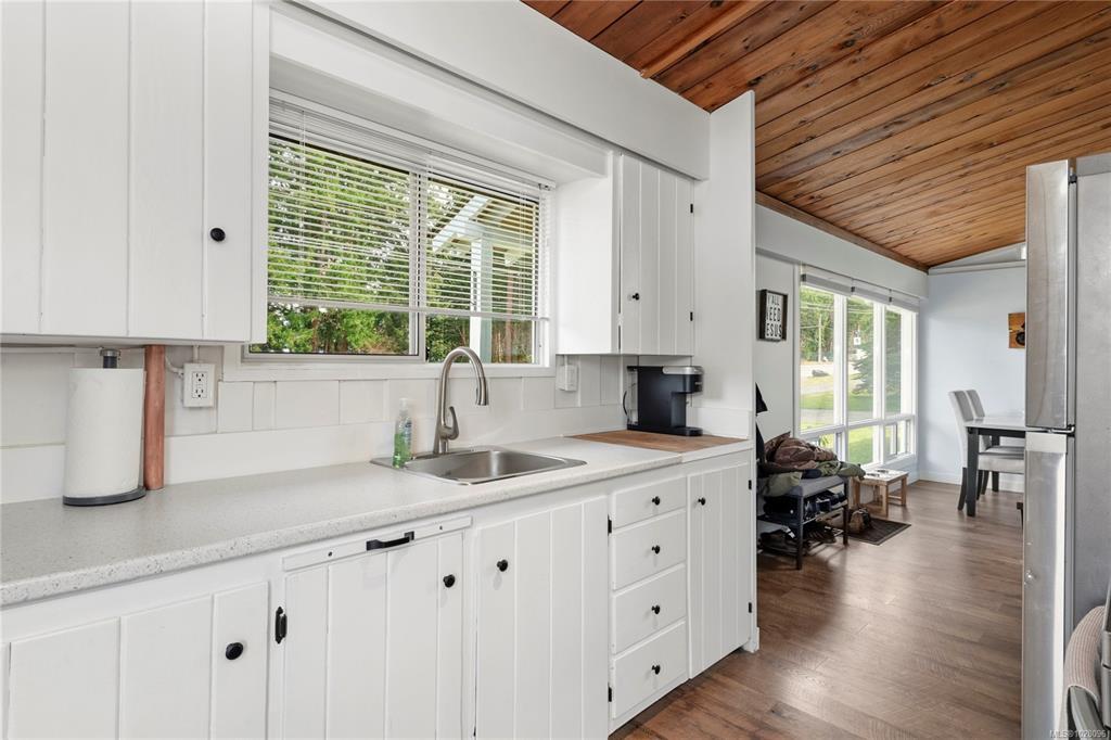 3678 & 3680 IHS Situated along scenic South Island Highway, this rare Campbell River property offers two charming homes on a spacious 0.41-acre R-I (Residential Infill) zoned lot with future development potential. Each cottage is approx. 675 sq ft and features vaulted wood ceilings with clerestory windows that fill the interiors with natural light, creating a bright coastal feel.