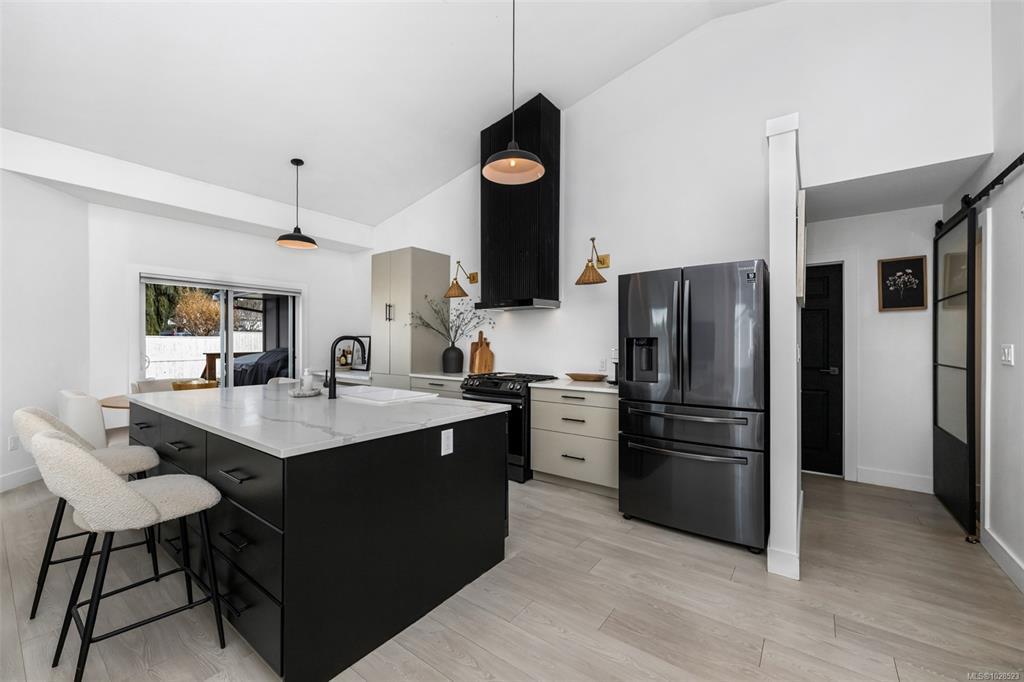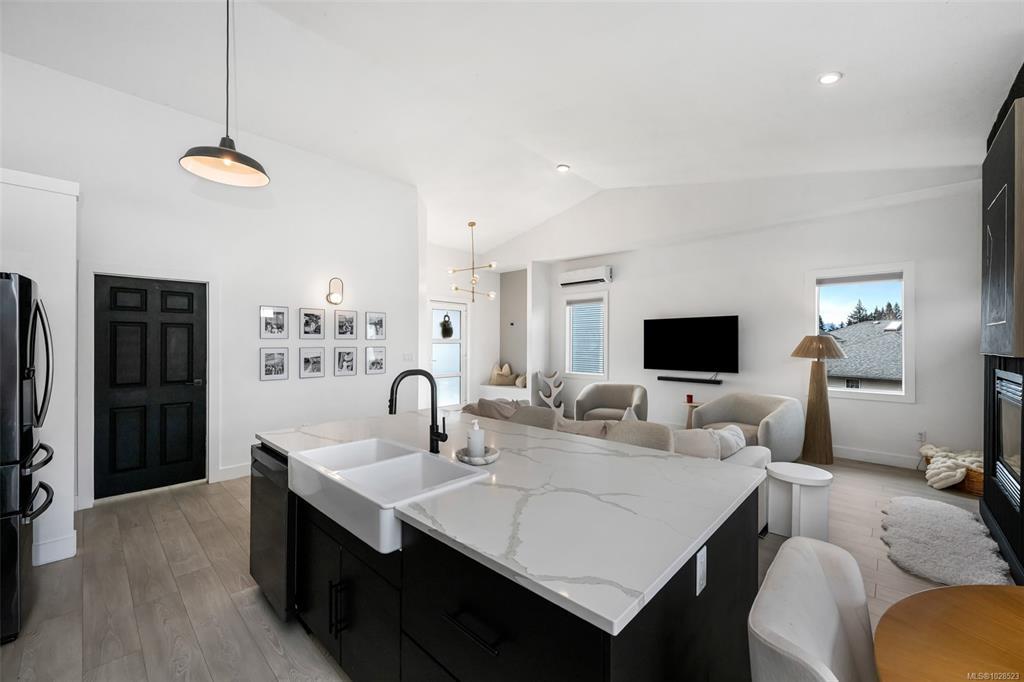 Bright, nicely updated 3 bed, 2 bath rancher on a sunny corner lot in a great location is sure to impress! The open dining/living space with 13' vaulted ceiling feels airy, features a gas f/p & opens to the back deck & patio—perfect for entertaining & summer BBQ's. Very nice kitchen with large island, quartz countertops & modern cabinetry & fixtures. The large primary bedroom also has a vaulted ceiling & a beautifully updated ensuite with makeup area, heated floors & walk-in shower. The other 2 bedrooms are generous & the main bathroom has been updated as well. Double garage & a low maintenance backyard that is quite private with lots of newer fencing—ideal for kids & pets. With new windows & hardi-plank siding in 2025 plus a ductless heat pump system, updated plumbing, black out blinds, gas hook up on the deck & a 200 amp panel. In a great location close to desirable Valley View & Isfeld schools, parks, shopping, arenas, hospital & college.