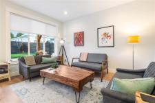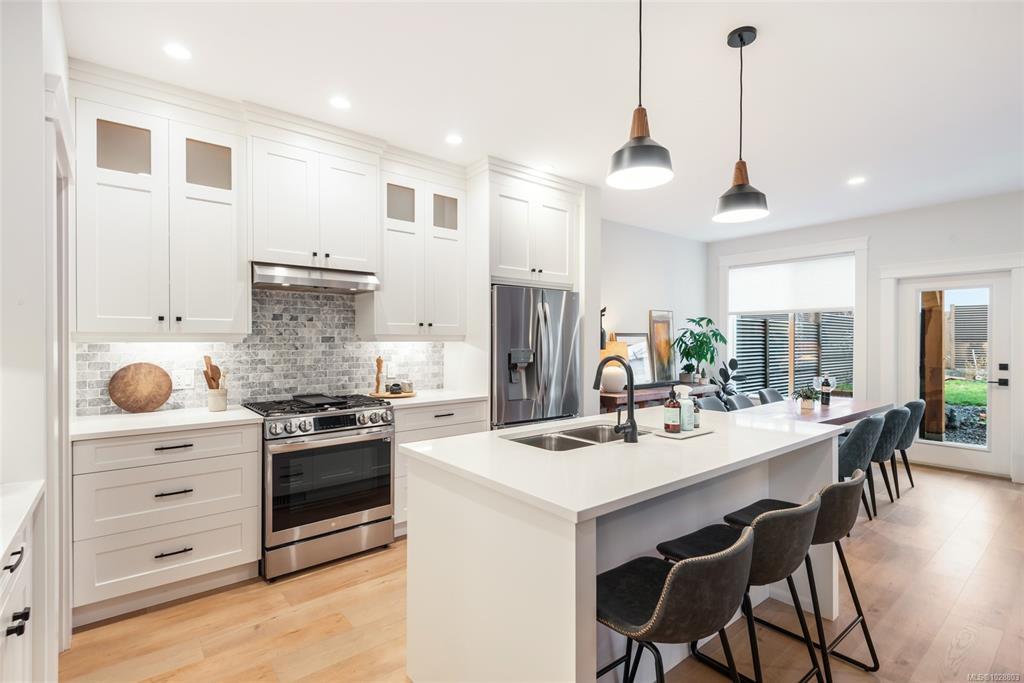 Not every home makes daily life feel this easy. Built in 2022, this contemporary townhome is the largest of 4 units in a small, self-managed strata, offering modern comfort in a quiet, neighbourly setting. The open-concept main level brings the kitchen, dining, and living areas together in one bright, functional space, with quartz countertops, under-cabinet lighting, custom pullouts, tiled backsplash, a walk-in pantry, island seating, and a gas range. Glass doors open to a covered concrete patio and a fully fenced, low-maintenance backyard with black metal privacy fencing, fruit trees, an herb garden, and a dedicated firepit area. Upstairs, the primary suite includes a walk-in closet and 5-piece ensuite, while two more bedrooms, a full bath, laundry room, and flexible sitting area add everyday versatility. Heat pump, attached garage, crawl space storage, and a walkable location near shopping, restaurants, schools, recreation, and trails. Call to arrange your private viewing.