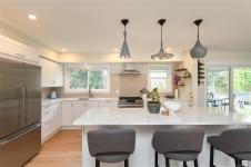 Beautifully renovated and thoughtfully updated throughout, this exceptional home blends modern style with everyday comfort. Gleaming wood floors flow seamlessly across the main living spaces, complemented by new lighting, windows, doors, heat pump, fresh paint, updated trim, and stylish new doors that create a bright, cohesive look. The stunning chef's kitchen is the heart of the home, featuring a massive island perfect forgathering, entertaining, and everyday family life. Bathrooms have been tastefully redesigned, adding both elegance and functionality. Downstairs, a newly redesigned legal suite with its own separate meter offers incredible flexibility-ideal for extended family, guests, or rental income potential. Set on an expansive .23-acre lot, there's endless room for kids to explore, play, and create lasting memories. Enjoy the perfect balance of privacy and convenience, with easy access to town and nearby schools. This move-in-ready property truly offers space and style.