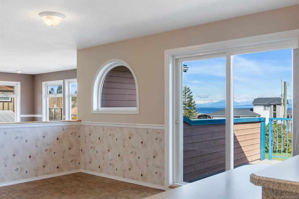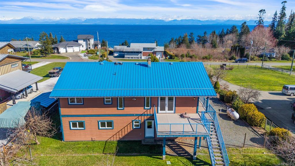 Wake up to spectacular sunrises over the Salish Sea and watch cruise ships from your kitchen window! Expansive ocean views and steps to the beach! Spacious 3,694 sqft, 5-6 bed home on 0.545 acres offers plenty of room for family, guests, in-laws, suite potential or home-based business (check zoning). Located in the sought-after Kitty Coleman neighbourhood, this stunning property offers the kind of peaceful coastal lifestyle that's becoming rare. Eagles soar overhead while distant mountains rise across the water, creating beautiful views from the extensive entertaining deck. Stargazing awaits! Just up from beach access and walkable to Kitty Coleman Park, enjoy kayaking, beach/trail walks, cycling, camping, fishing and the boat lauch, while only 15 mins to Courtenay. Fruit trees, lush grass, fire pit, space to garden. Charming detached studio w/porch, indoor workshop, double garage, ample RV/boat parking. Quick possession! Enjoy a truly rare West Coast lifestyle now! A must see-BOOK NOW!