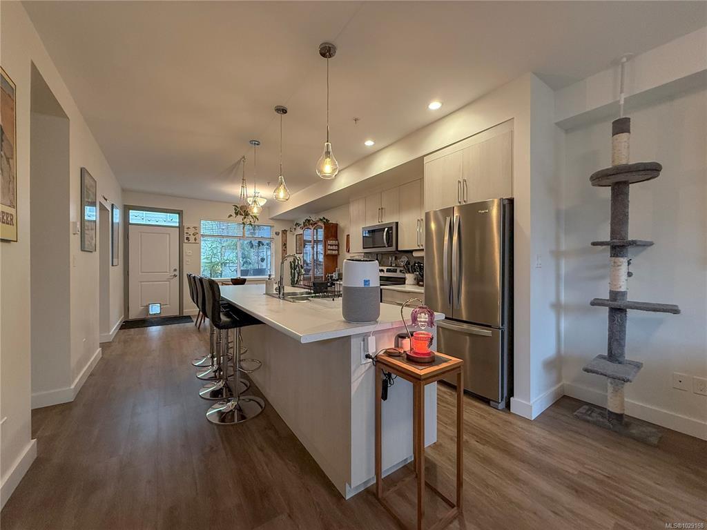 Enjoy easy Campbell River living in this beautifully designed 2018 Brownstone townhome, ideally located just steps from the beach and the scenic Seawalk. Offering the perfect blend of comfort and style, this low maintenance home might just check all your boxes! Inside, you’ll find a bright and open-concept layout with high-quality finishes throughout. The kitchen is thoughtfully designed with modern cabinetry, ample counter space, and contemporary fixtures- seamlessly connecting to the dining and living areas. The back patio is an absolute oasis featuring a serene pond- a must-see feature. This unit has a brand new hot water tank and some fresh paint. Enjoy morning walks along the Seawalk, beach fires just across the street, and the convenience of being just minutes to local amenities, dining, and recreation. The well maintained strata allows two dogs or cats with no size limit, and each unit enjoys two parking stalls and an 8x10 storage locker. Don't wait- book your showing today!