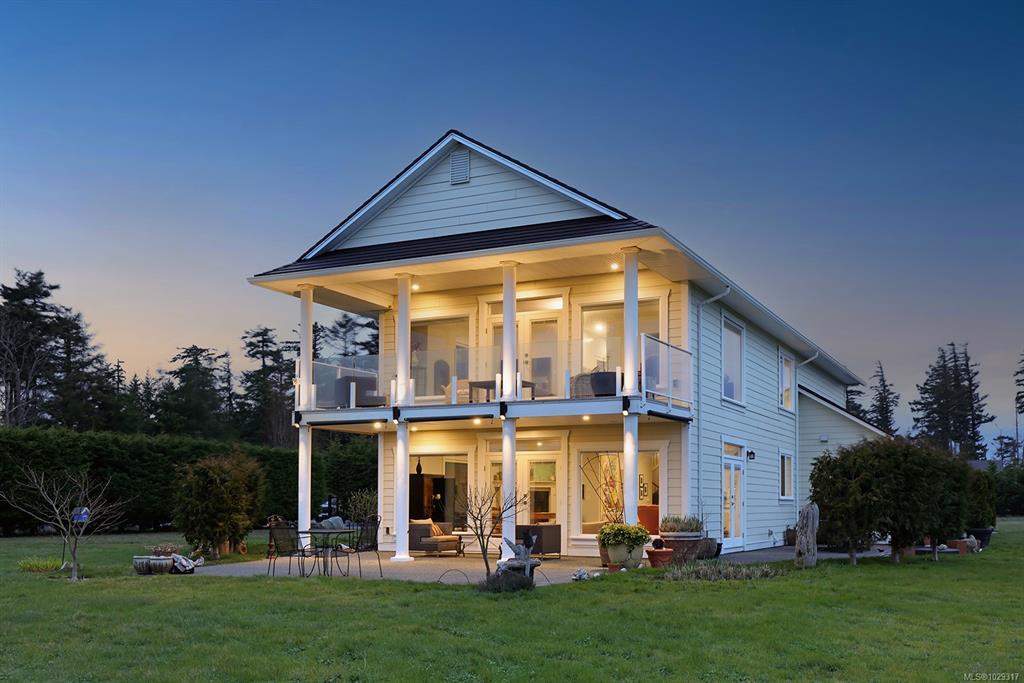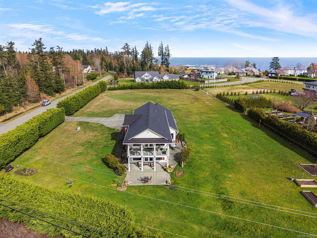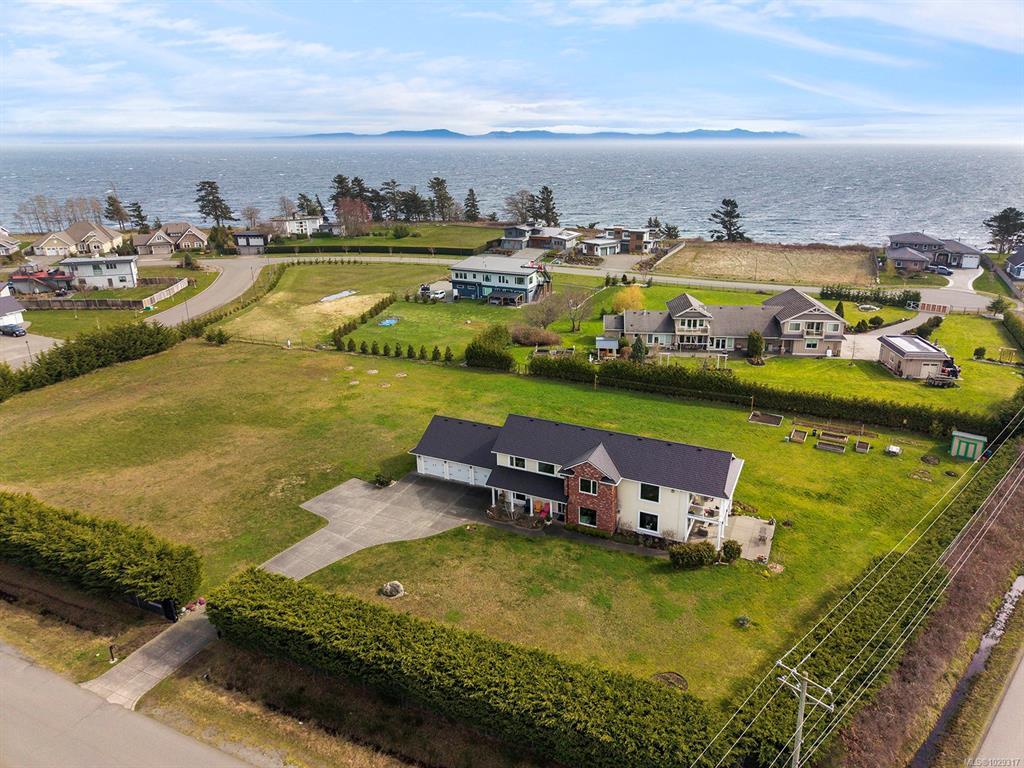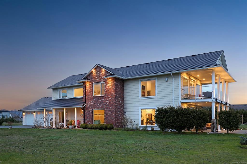 Spectacular Estate Property with panoramic mountain and ocean views, to the Comox Glacier and the Beaufort Range. Set on 2 acres of park-like property in the peaceful Claddagh Estates, an impressive neighbourhood with full city services. This Southern/Colonial inspired 2 story residence offers a sprawling open plan with 3,420 sf, 4 BD/ 4 BA, including 2 primary bedrooms, one on each level, for ease of accessibility. Built in 2017, this distinctive property blends meticulous craftsmanship w/ refined elegance for comfort without compromise. Windows of generous proportions invite streaming sunlight from dawn to dusk on both levels. Stunning kitchen w/ large island & seating, gas range, wall oven, & coffee/cocktail bar. Spacious Great room offers a flexible plan w/ propane fireplace, 2 sets of French doors for seamless indoor/outdoor living. Level lot, fenced & gated w/ hedging, ideal for tennis court, pool, etc. Triple car garage, Ironwood metal shake roof, 2 H/W tanks, Heat pump for A/C.