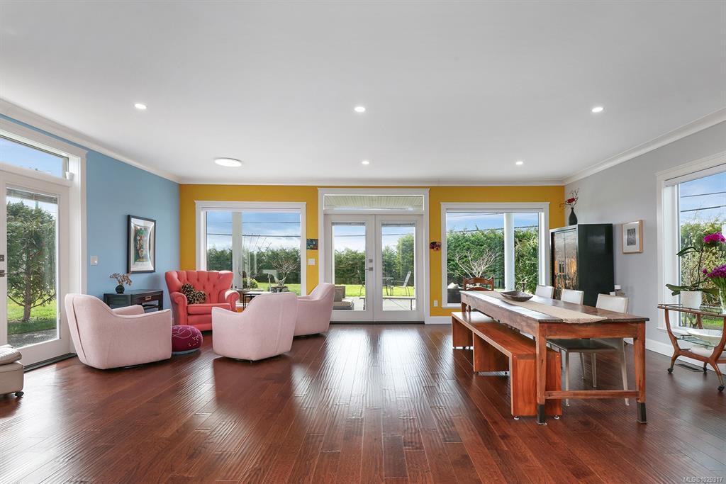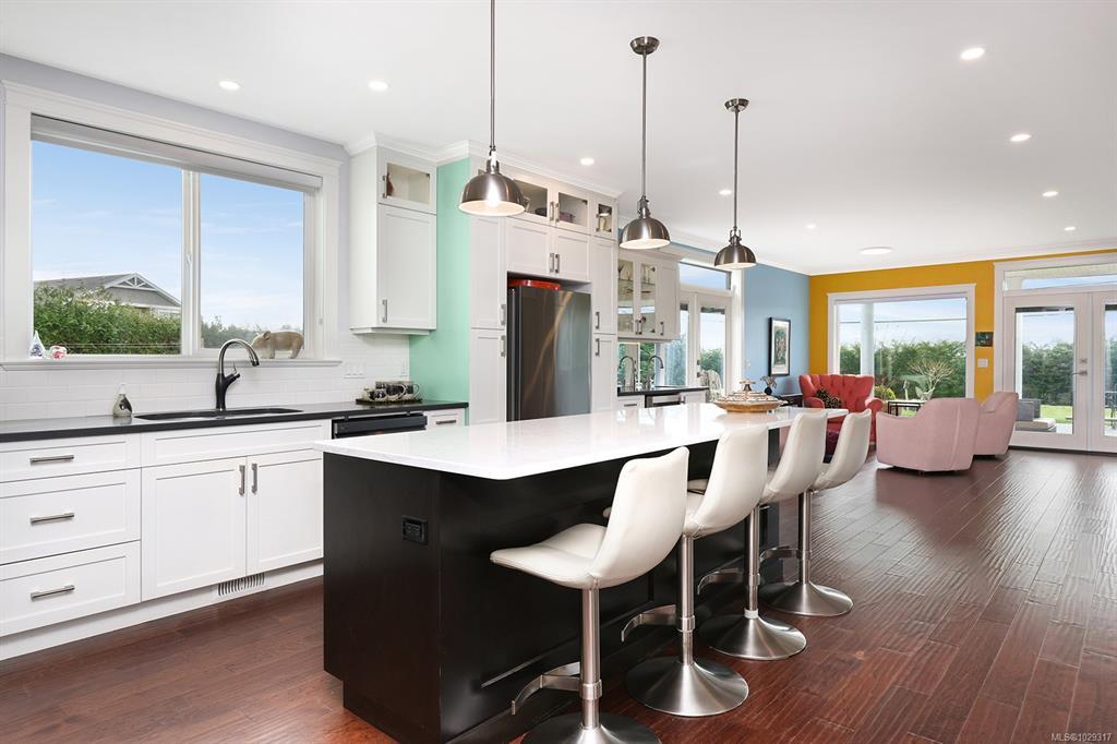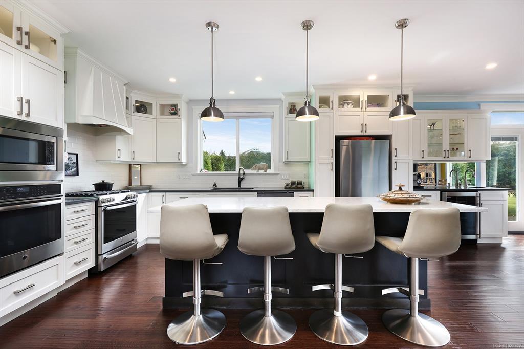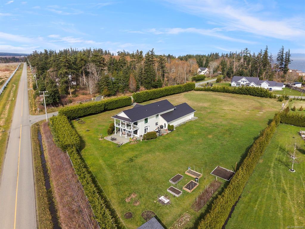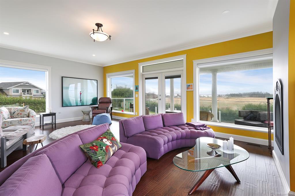 Spectacular Estate Property with panoramic mountain and ocean views, to the Comox Glacier and the Beaufort Range. Set on 2 acres of park-like property in the peaceful Claddagh Estates, an impressive neighbourhood with full city services. This Southern/Colonial inspired 2 story residence offers a sprawling open plan with 3,420 sf, 4 BD/ 4 BA, including 2 primary bedrooms, one on each level, for ease of accessibility. Built in 2017, this distinctive property blends meticulous craftsmanship w/ refined elegance for comfort without compromise. Windows of generous proportions invite streaming sunlight from dawn to dusk on both levels. Stunning kitchen w/ large island & seating, gas range, wall oven, & coffee/cocktail bar. Spacious Great room offers a flexible plan w/ propane fireplace, 2 sets of French doors for seamless indoor/outdoor living. Level lot, fenced & gated w/ hedging, ideal for tennis court, pool, etc. Triple car garage, Ironwood metal shake roof, 2 H/W tanks, Heat pump for A/C.