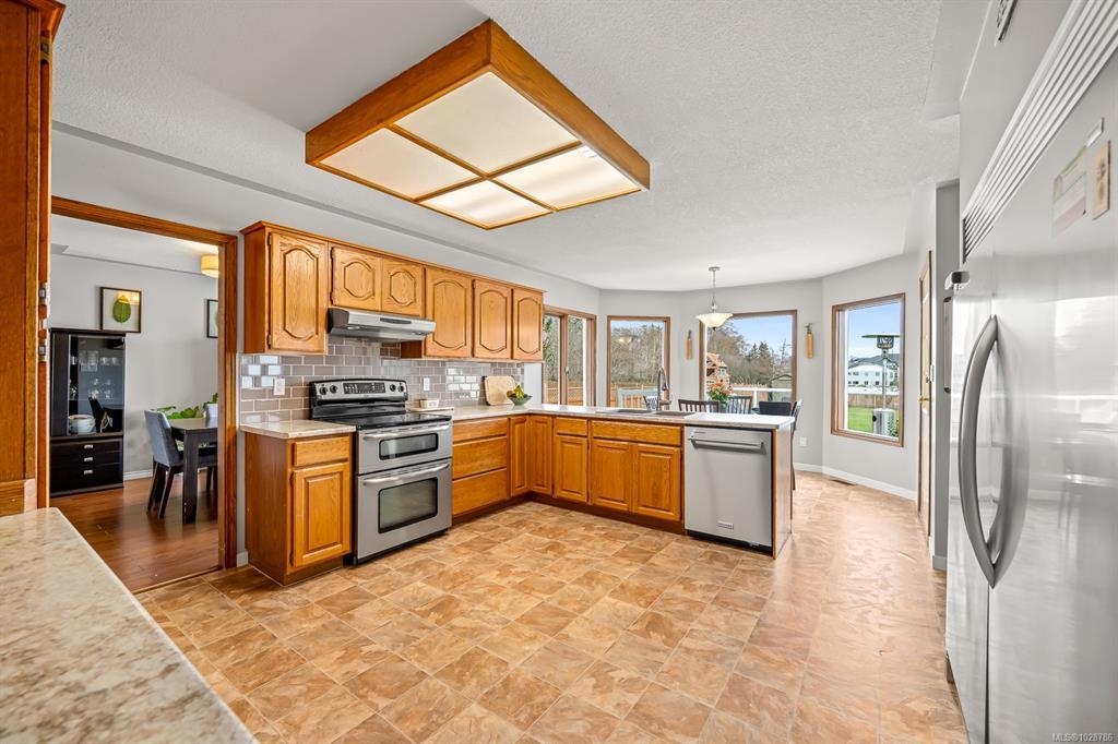 Located on one of the most desirable streets in Campbell River, this home offers an exceptional opportunity in a prime setting. Set on a 0.49 acre lot complete with a detached shop, double attached garage, & approximately 3,000 sq. ft. of living space. The main level welcomes you through the foyer into a cozy sunken living room with vaulted wood ceilings. At the heart of the home is the spacious kitchen with breakfast nook & access to the backyard, while the main floor is completed by a formal dining space, second living room, & a den. Upstairs features 4 good sized bedrooms, including the primary suite with full ensuite & private rear deck. The lower level offers a large rec room that could be converted back into two bedrooms, along with a full bathroom & laundry. Complete with fruit trees, ocean views, & plenty of room for the family to roam, this is a rare offering on a character-filled dead end street just a 1 minute walk to the beach, Ken Forde Park, & the Willow Point Seawalk.