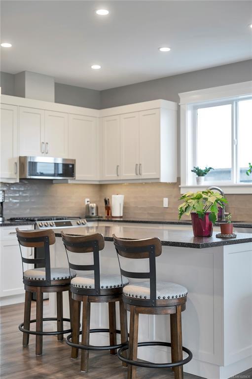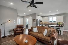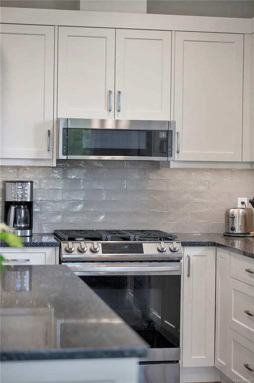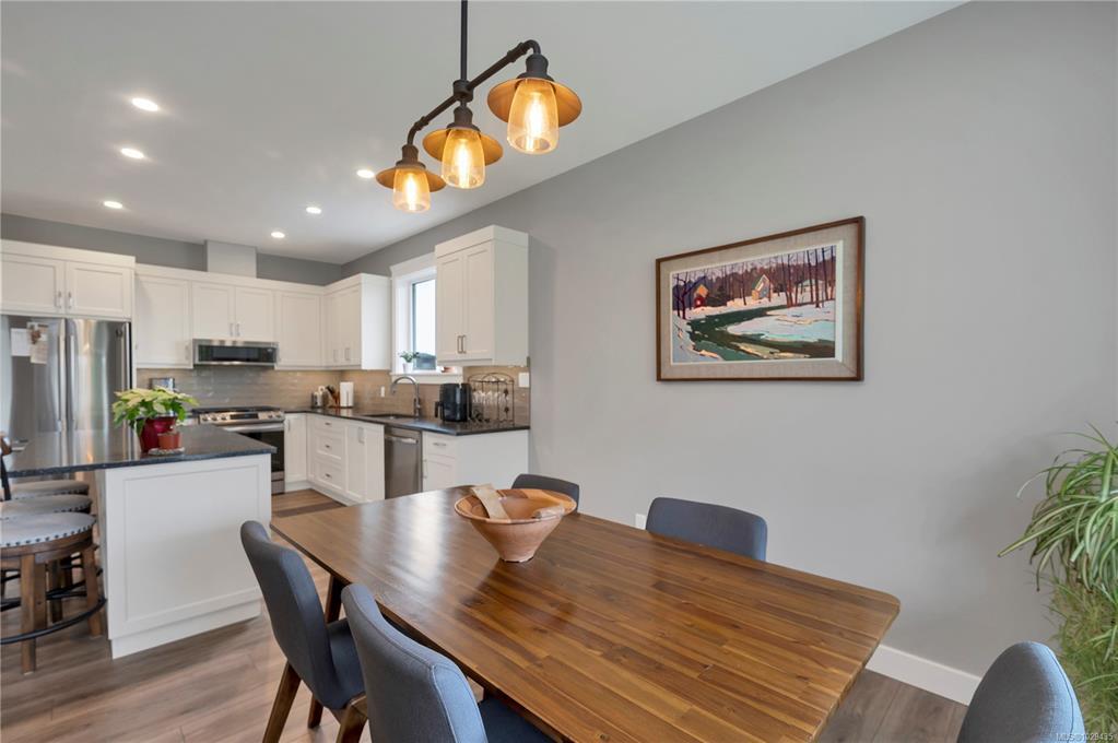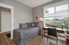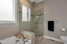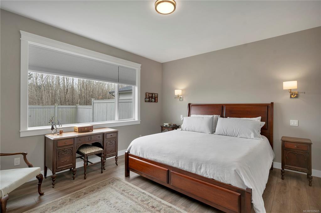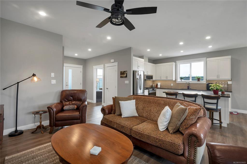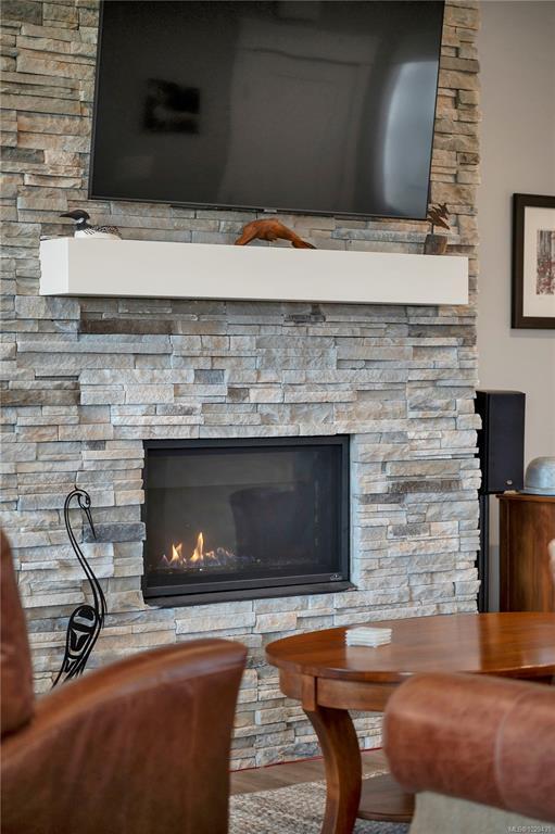 Introducing this stunning, like-new, 3-bed, 2-bath executive rancher in a quiet, well-maintained bareland strata complex. This end unit was thoughtfully customized at construction and is a masterpiece of modern living, featuring hot water on demand, an efficient heat pump, and heated floors in the master bathroom. The chef’s kitchen offers custom cabinets, under cabinet lighting, quartz countertops, a gas stove, matching quartz in both bathrooms and laundry and a tiled shower upgrade in the ensuite. The bright, open-concept layout is enhanced by 9-foot ceilings and a custom fireplace, perfect for comfortable living and entertaining. Step outside to a private, south-facing backyard backing onto undevelopable parkland, complete with a steel-reinforced aggregate patio, gas BBQ outlet, and custom awning. Additional highlights include a 3-zoned irrigation system with censors, a spacious, heated double-car garage and a central location near shopping, trails, and amenities.