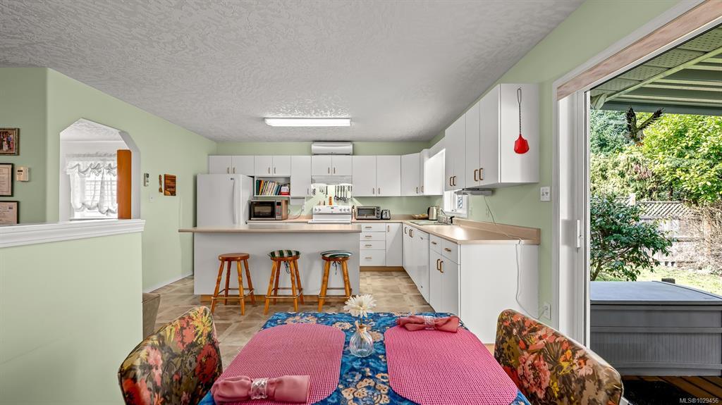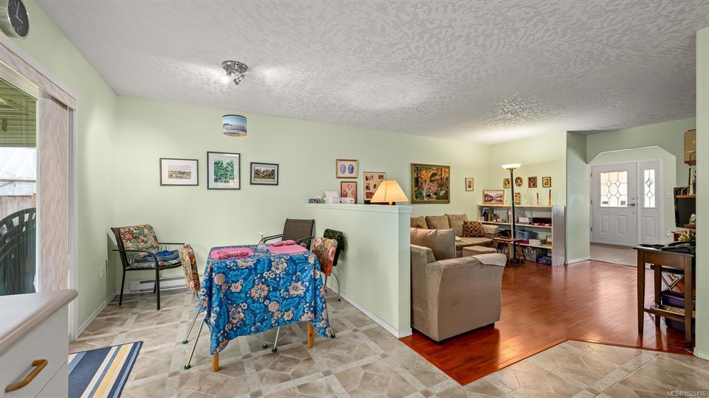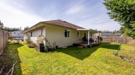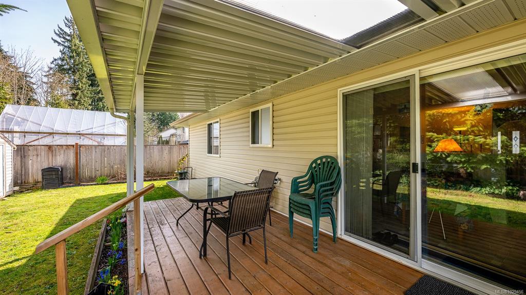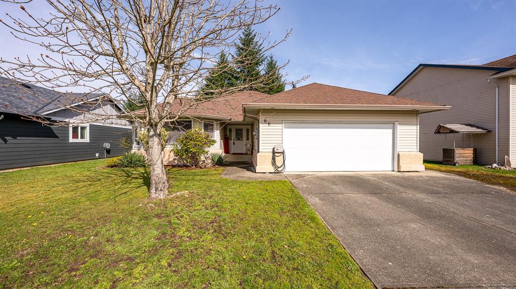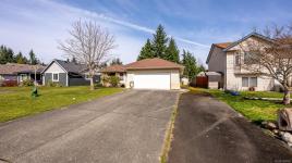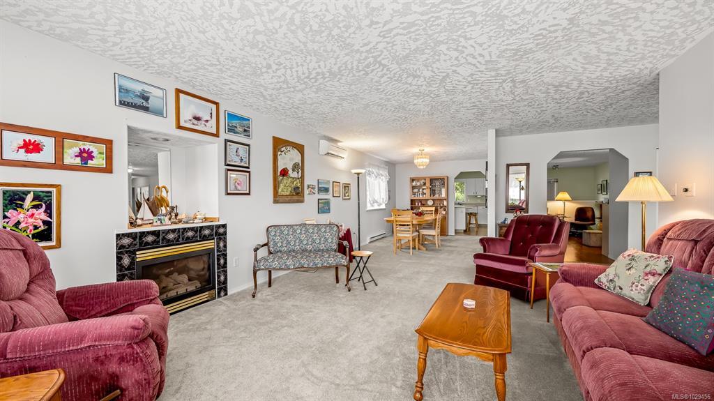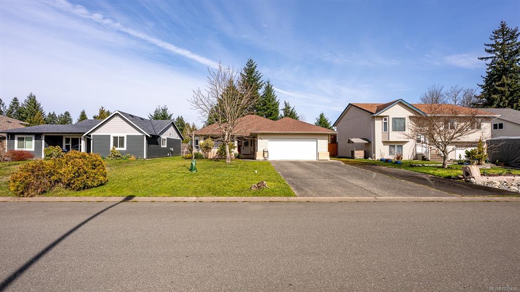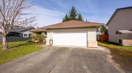 Welcome to easy, single level living in the desirable Puntledge Park neighbourhood of Courtenay. This well kept 3 bedroom, 2 bathroom rancher offers over 1,900 sq ft of comfortable and functional space. Built in 1996, the home features a practical layout, spacious living areas, a natural gas fireplace, and a heat pump for efficient heating and cooling year round. The kitchen opens directly to a covered back patio, creating a seamless transition for everyday living and relaxed outdoor time. The fully fenced backyard is private and low maintenance, while a skylight in the bathroom brings in natural light. A double garage with additional parking adds convenience and flexibility. Set in a quiet, established neighbourhood close to walking trails, parks, and the Puntledge River, this is a well cared for home in a sought after Courtenay location.