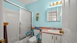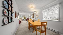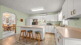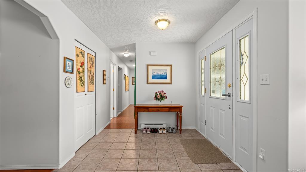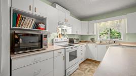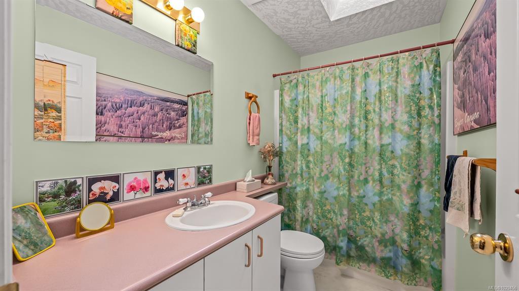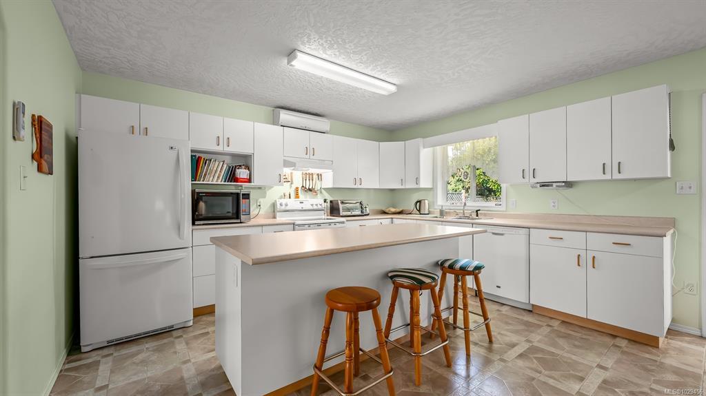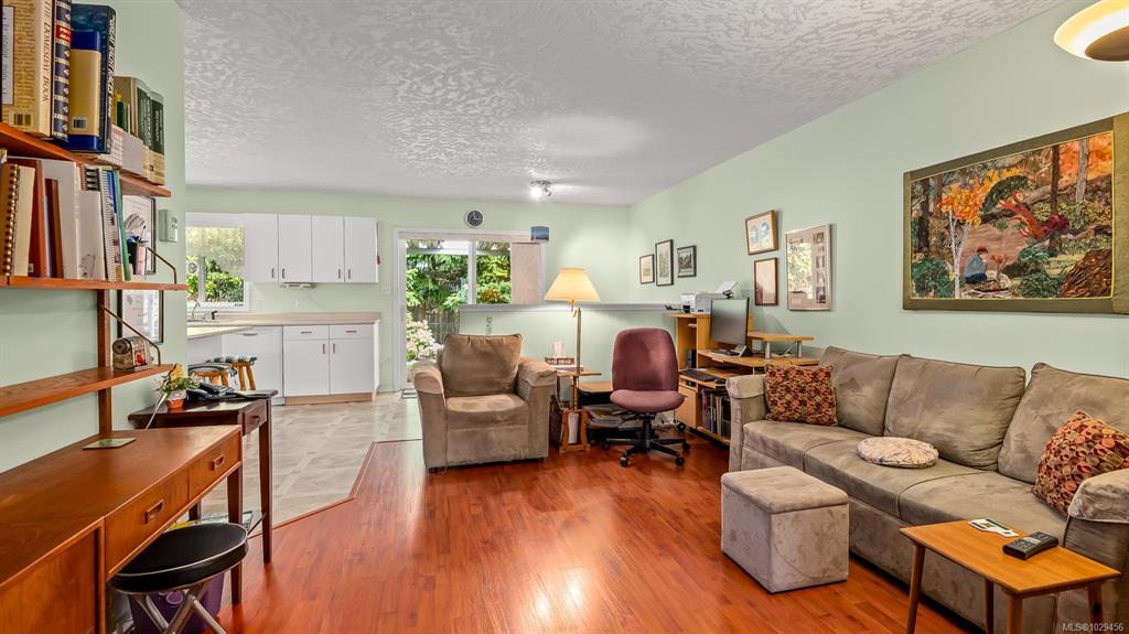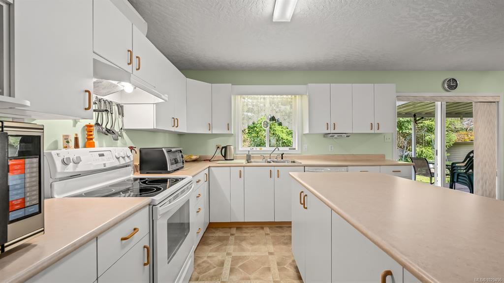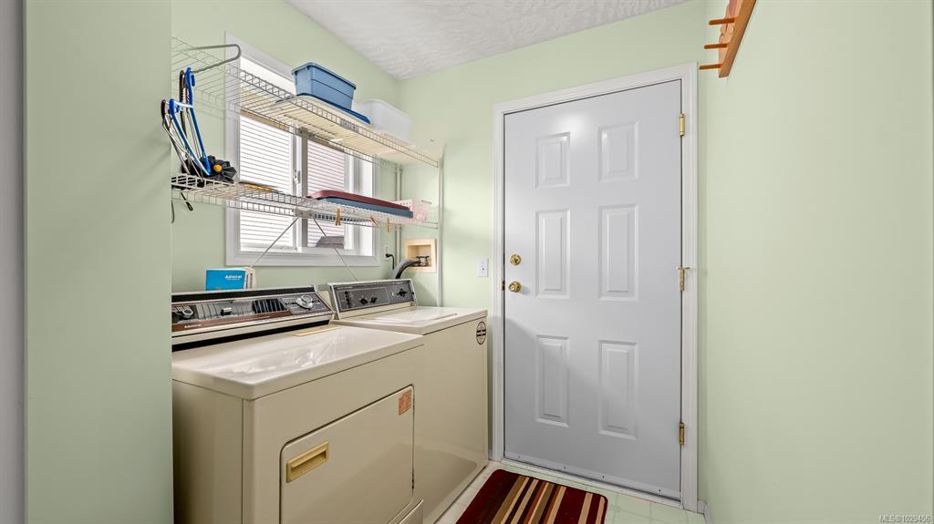 Welcome to easy, single level living in the desirable Puntledge Park neighbourhood of Courtenay. This well kept 3 bedroom, 2 bathroom rancher offers over 1,900 sq ft of comfortable and functional space. Built in 1996, the home features a practical layout, spacious living areas, a natural gas fireplace, and a heat pump for efficient heating and cooling year round. The kitchen opens directly to a covered back patio, creating a seamless transition for everyday living and relaxed outdoor time. The fully fenced backyard is private and low maintenance, while a skylight in the bathroom brings in natural light. A double garage with additional parking adds convenience and flexibility. Set in a quiet, established neighbourhood close to walking trails, parks, and the Puntledge River, this is a well cared for home in a sought after Courtenay location.