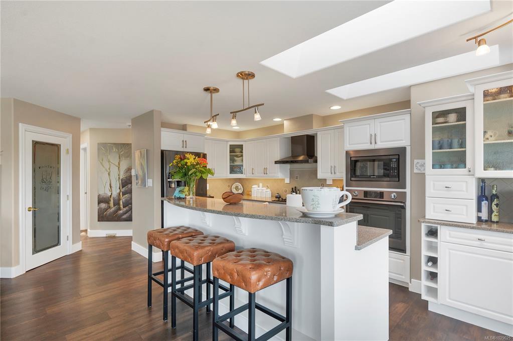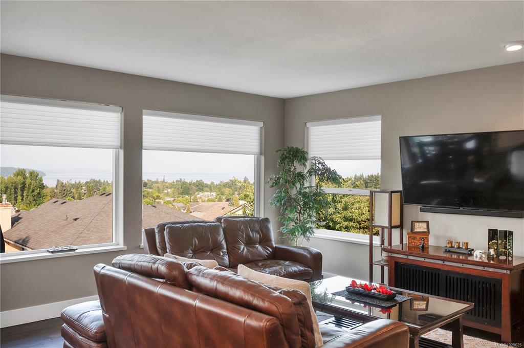 Located in a quiet Willow Point neighbourhood, this spacious home offers sweeping views of Discovery Passage and the coastal mountains. The open floor plan maximizes the ocean view from the main living areas, enhanced by large windows and skylights that fill the space with natural light. Featuring four bedrooms (three with full ensuites) as well as a den which could easily be a 5th bedroom, this home offers plenty of space for everyone. The primary bedroom, with blackout blinds, walk-in closet, and 5 piece ensuite also enjoys a lovely ocean view and access to the deck. Additional features include: quality vinyl plank flooring through main living area, double garage, tile roof, irrigation system, newer gas furnace and heat pump, kitchenette down which could easily be converted to a separate suite/mortgage helper, large balcony overlooking the gorgeous view, plenty of storage, laundry room with adjacent folding/drying room, and hobby room with built in ventilation system. A must see!
