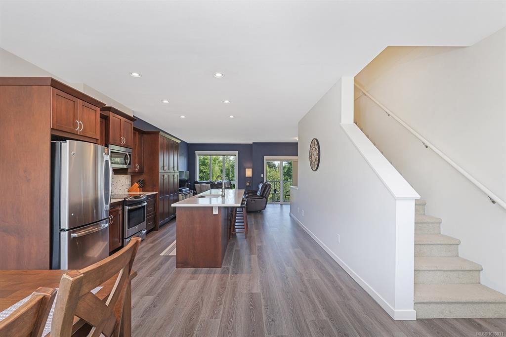 This three-story townhome is a fantastic opportunity to own in a well-established neighbourhood with a smart layout and comfortable living spaces. The main floor features an open-concept design with large windows and high ceilings, creating a bright and inviting atmosphere. The kitchen is both stylish and practical, offering stone countertops, stainless steel appliances, and ample storage. Step onto the deck off the living room to enjoy views of a peaceful pond, often visited by ducks, herons, and eagles. Upstairs, you’ll find a spacious primary bedroom with a three-piece ensuite, two additional bedrooms, and a full four-piece bathroom. The entry-level floor offers added versatility with a bonus room and walk-out access to a covered patio—perfect for guests, hobbies, or a home office. Recent upgrades include a new hot water tank, adding extra peace of mind. With a great location close to schools, shopping, parks, and recreation, this home offers both comfort and convenience.