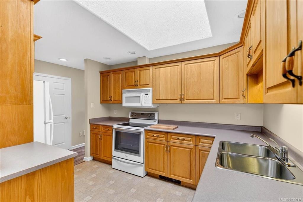 HILLCREST VILLA - An exceptionally well maintained two bedroom - 2 bath patio home in a very well established 12 unit +55 community. This unit features a large living room-dining area with natural gas fireplace and direct access to a private partially covered patio area, a spacious kitchen with oak cabinetry, double stainless sinks, a primary bedroom with two closets and a four piece ensuite, a second bedroom, a laundry and a 3 piece main bath. An attached garage with storage and a front patio complete this package. Updates include mostly new flooring and interior paint, a newer heat-pump; a comfortable home that is move-in ready. The complex has a club-house for resident use that includes guest accommodation. The property is nicely landscaped and is well maintained. The development is conveniently located close to Echo Centre, the Multiplex, shopping and services..