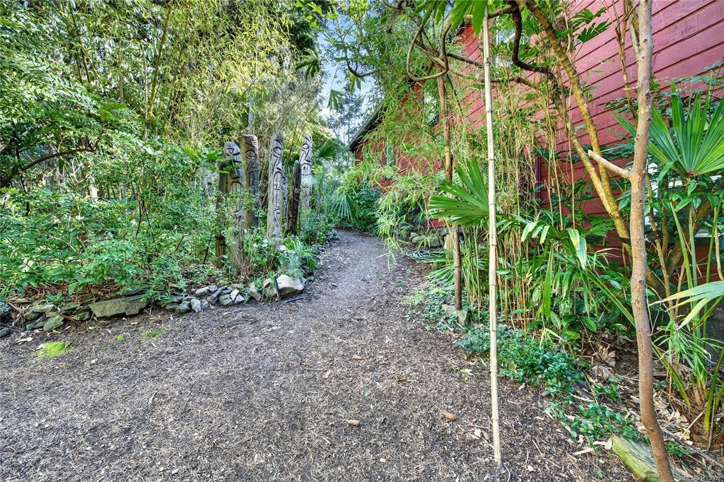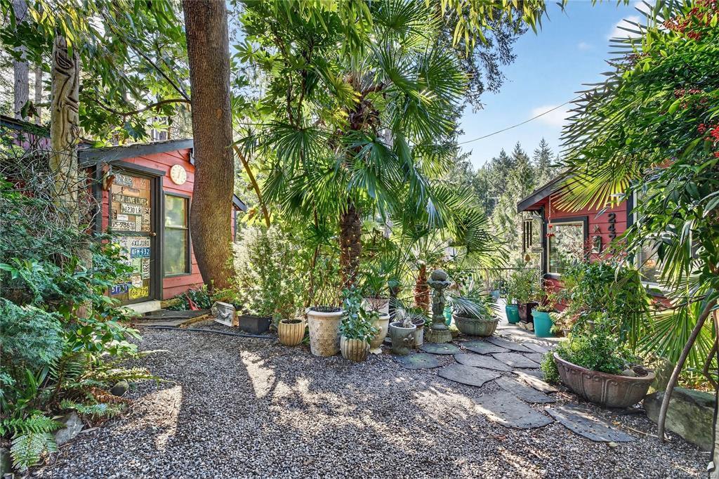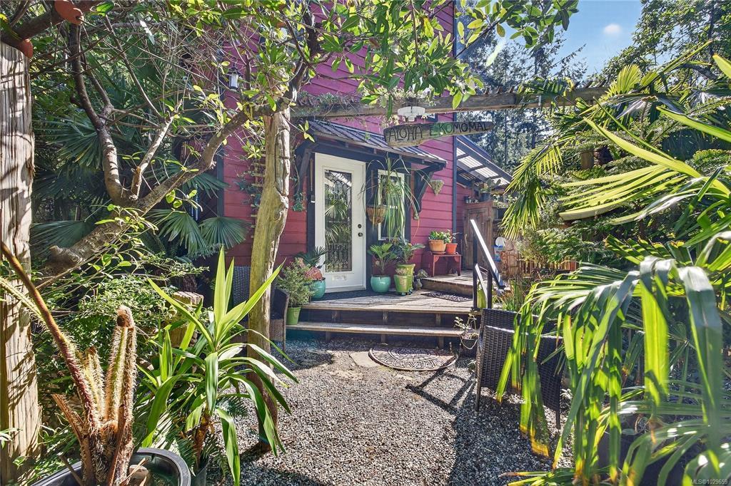 Step into your very own lush, tropical paradise with this extraordinary 2-acre estate, nestled in a unique island micro-climate . Surrounded by exotic plants, swaying palms, vibrant flowers, and fruit trees, this enchanting property is a dream come true for nature lovers, creatives, and those seeking serenity. The main residence is a charming home brimming with artistic touches and cozy comfort, including a wood-burning fireplace that adds warmth and character. Meandering garden trails, hidden nooks, and inviting patios create a peaceful retreat around every corner. Enjoy tranquil trails, patios, a greenhouse, palm nursery & veggie garden. Separate art studio, hobby studio, tool shed and a classic tiki hut. A well-established B&B offers additional income potential or space for guests, featuring 2 private suites, each with entrance and bathroom. Whether you’re looking to live sustainably, run a business, or simply escape to a magical island haven, this property is a rare find.