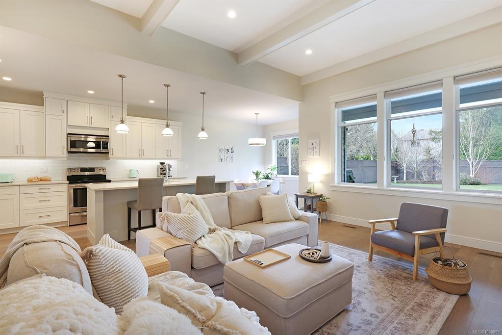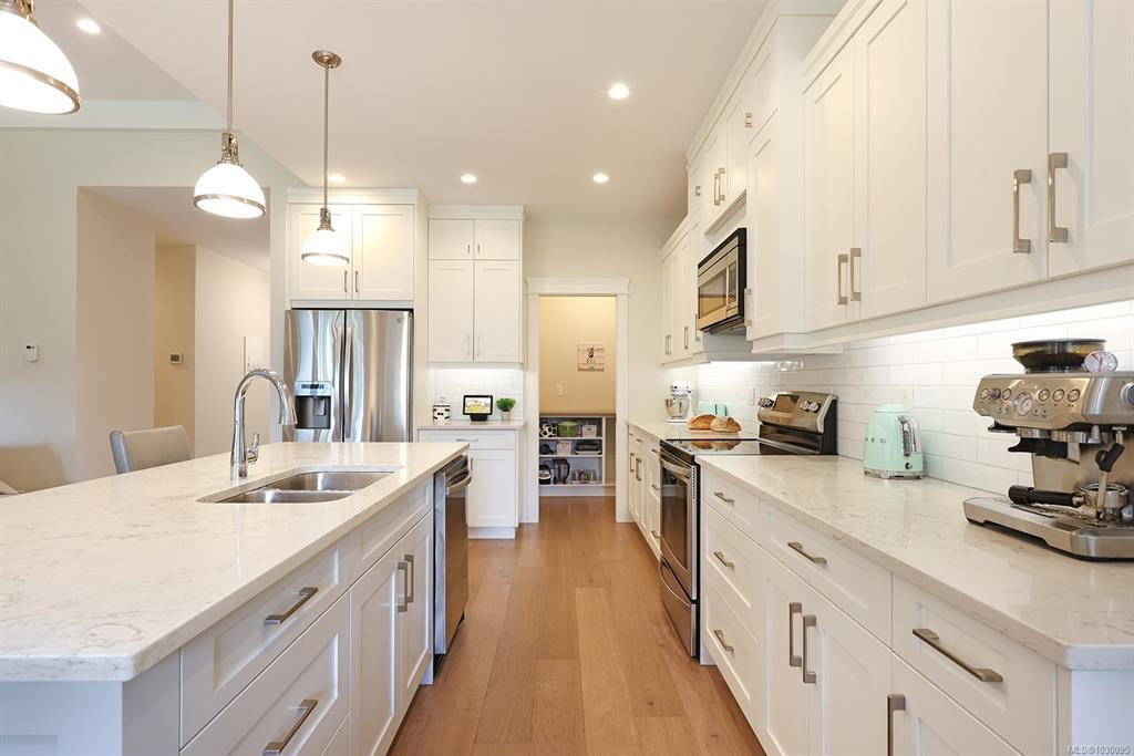 Stunning home in the Rise! 912 Prestwick Place was built by Integra Homes and has been impeccably maintained by one owner. Situated on a no thru road, you will love everything about this 1700sqft rancher from the gorgeous finishings, location, private backyard with direct access to nature trails, and the well-designed layout. Drenched in natural light, with 9ft ceilings throughout and a stylish step-up ceiling in the living room, the open concept kitchen is anchored by a large island, and features loads of cabinet space, stainless steel appliances with a gas range, and a butler pantry. The hardwood flooring runs throughout, bedroom separation is excellent, and the primary suite features and generous walk-in closet, and a 5-piece master bath including a soaker tub. The home is energy efficient with a heat pump, as well there is a gas fireplace for those cozy nights. Outside offers covered patios front & back, beautiful landscaping, and a fenced backyard with wonderful privacy!