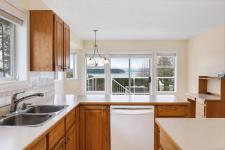 Perched to capture breathtaking ocean views, this 3,407 sqft home blends space, flexibility, and coastal living! An expensive driveway and 2-bay garage provide abundant parking. The main level entry opens to a bright, elevated living and dining area, featuring expansive windows and ocean views from many of the main floor rooms. Step onto the spacious balcony, perfect for morning coffee or entertaining friends and family on summer evenings as the glow of cruise ships pass by. The home features two full kitchens, seperate lower floor acces and a second laundry, ideal for extended family or guests. An irrigated yard keeps outdoor spaces lush with minimal effort. Generous indoor and outdoor areas combine comfort, function, and lifestyle, making this property truly special.