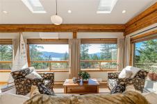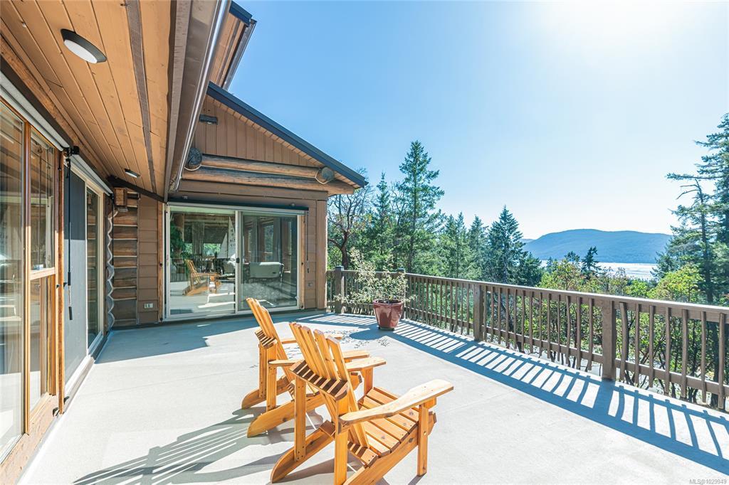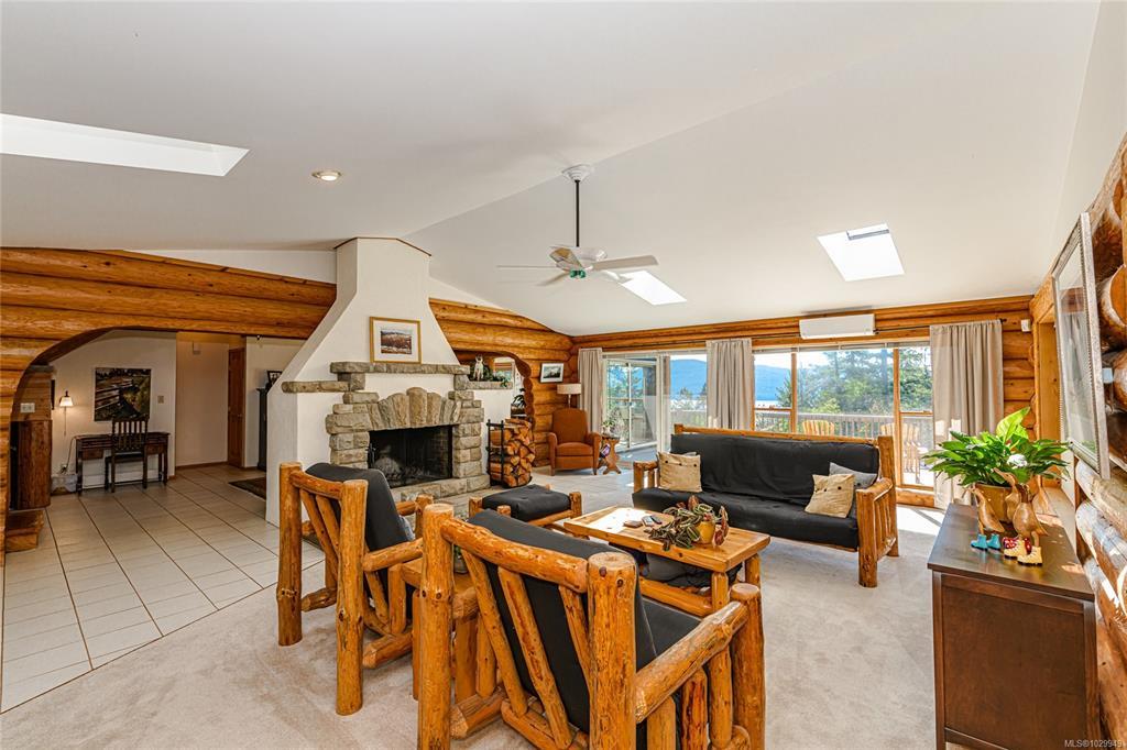 Natural beauty meets refined design in this exceptional west coast ocean view home. The bright and airy main floor features a stunning great room with an impressive fireplace, where rich wood tones create an inviting, timeless space. A stylish sunroom and wrap-around decks showcase the dazzling ocean views. Three spacious bedrooms each have their own ensuite. The lower level is ideal for guests or as a BnB and also features a separate gym, plentiful storage, and an expansive covered deck. A large garage with Level 2 EV charger is perfect for storage, projects, or workshop. Meticulously maintained, the extensive upgrades include all required log maintenance, leaving the home in outstanding, move-in-ready condition. Outdoors, enjoy beautifully landscaped perennial gardens, raised beds, fruit trees, and water catchment supporting a sustainable island lifestyle. Located in upscale Channel Ridge, steps to extensive trails and minutes to town and ferry. Welcome to Spirit Lodge.