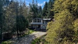 Refined Salt Spring Island living on 1.39 private acres, where beauty meets refined comfort. With views of farmland over to Galiano Island, this beautifully updated 3-bedroom residence offers vaulted wood ceilings, both propane and wood fireplaces, and a seamless flow to expansive wraparound decks. Great for entertaining. Each bedroom features its own ensuite, creating a sense of privacy and ease for guests and family. Thoughtful upgrades include a heat pump, updated appliances, with attention to details and finishes throughout. The flexible layout lends itself to extended family living, guests or take on the existing B&B for revenue ~BONUS is detached, self-contained 512 sq. ft. studio offering exceptional versatility for guests, creative pursuits, or income potential. Extra bonus is a workshop with separate access for your hobbies or home DIY projects. Landscaped grounds with irrigation, established gardens, and space for curated food production complete this tranquil island retreat.