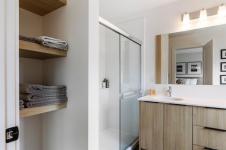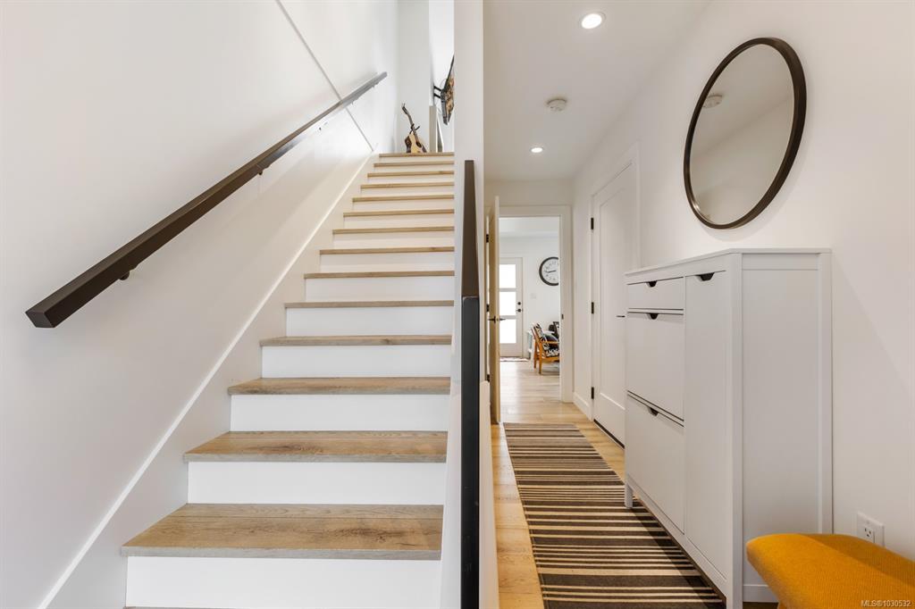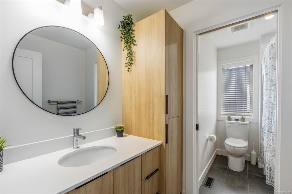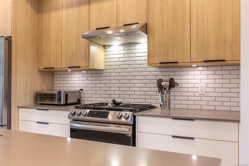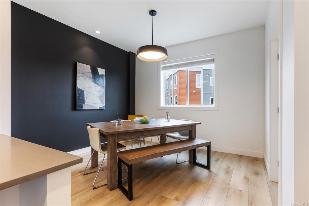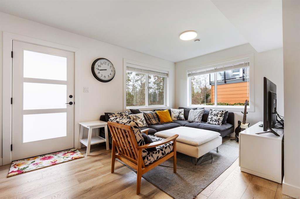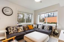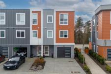 This exceptional end-unit townhouse in Comox’s Urban Corner community offers one of the largest floor plans, with 1,675 sq ft of thoughtfully designed living space. The main level features a bright, open-concept layout with 9 ft ceilings & a beautifully appointed kitchen with quartz countertops, custom cabinetry, gas stove, & dedicated coffee/wine nook. The living area is anchored by a gas fireplace with custom built-ins, creating a warm & inviting space. Step onto the deck with natural gas BBQ hookup. Upstairs offers three bedrooms, including a primary suite with walk-in closet and ensuite. The ground level provides a versatile flex space ideal as a 4th bedroom, office, media room, or gym. Additional features include in-house vacuum, gas furnace, heat pump with A/C, & tankless hot water. Green space sits directly across from the driveway, with easy access to the dog area & wash station for bikes or vehicles.