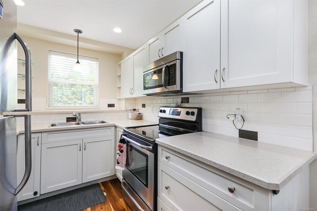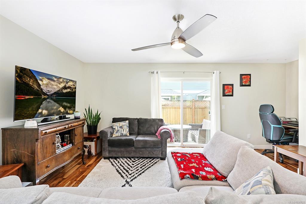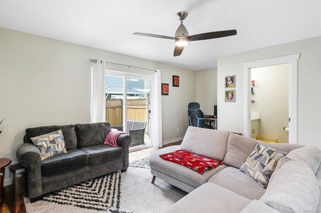 Fully fenced back yard, 3 bedrooms, and modern finishings in this family friendly townhouse. One of the premier locations in the complex, this end unit enjoys side access through to the back patio space. The interior features newer upgraded engineered hardwood flooring, stainless steel appliances, and a bright open concept. All three bedrooms are upstairs creating some separation and the feel of a single family home. A great bonus is the expansive crawl space with easy access and plenty of room for storage. Outside the front entrance you'll find room to park two vehicles and there's even a cute and private playground within the complex! Rentals allowed and pets are welcome. Centrally located close to shopping, groceries, CFB Comox, and schools.