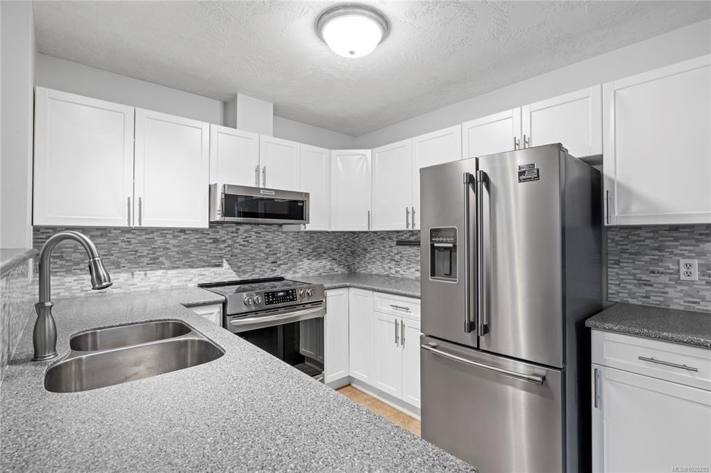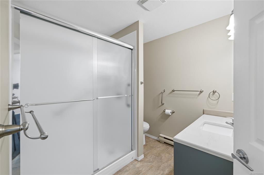 Welcome to Aspen Village! This attractive, updated 2-bed, 1-bath end-unit patio home is an ideal opportunity for first-time buyers, small families, seniors, or downsizers. Thoughtfully designed w/ an open-concept layout, featuring a modernized kitchen w/ newer stainless steel appliances that flows seamlessly into the living/dining areas. Enjoy year-round comfort with an efficient heat pump, along with two good sized bedrooms & a 3-piece bath w/ a walk-in shower. A convenient laundry, storage/utility room adds to the home’s practical appeal. Outside, you’ll find driveway parking for one vehicle plus an addtl storage shed—perfect for bikes & outdoor gear. Located in the beautiful seaside town of Comox on central Vancouver Island, this home is just a short walk to shopping featuring Quality Foods, Pharmasave, & Bosley’s pet store. With no age restrictions, & allowing up to two pets (cats/dogs), this is a flexible and welcoming community. A fantastic opportunity in an unbeatable location.