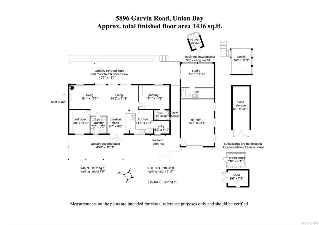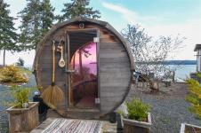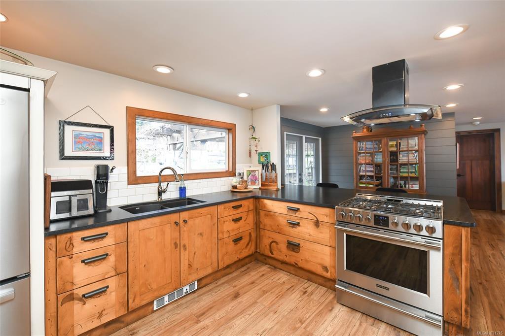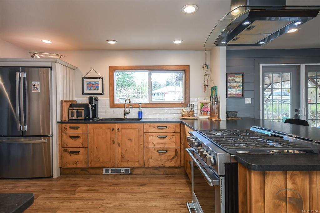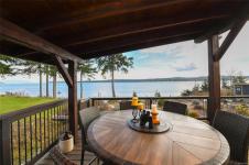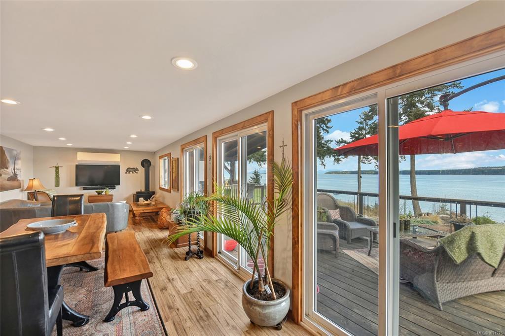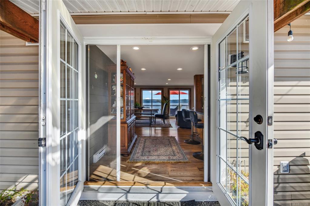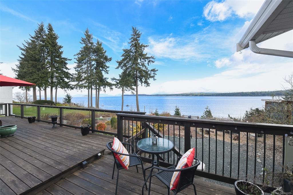 Set on a private half-acre in the community of Union Bay, this 3-bedroom, 3-bathroom rancher is tucked away on a quiet no-through road & has expansive ocean & mountain views. A welcoming, oversized entryway offers custom built-in storage & the open-concept floor plan is ideal for both everyday living/entertaining. Bright, spacious kitchen is complete with custom cabinetry, stainless appliances, granite countertops & eat-up bar. The dining area flows seamlessly outdoors through French doors. The living room has 3 sets of sliding glass doors that open onto a 43-foot partially covered deck, where the views take center stage. Generous primary has a 4-piece ensuite, 2nd bed with built-in Murphy bed & separate third bed with its own 4-piece ensuite. There’s even a 9’x11’ bunkie. Landscaped grounds with perennials, fruit trees & raised garden beds. Modern updates include PEX plumbing, a 10yr old roof & municipal water. Enjoy outdoor living year-round with a firepit & a relaxing barrel sauna.