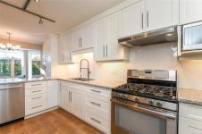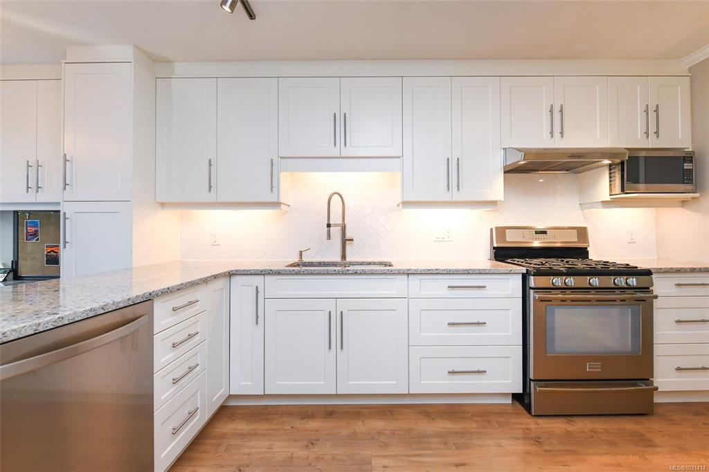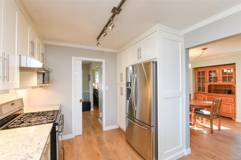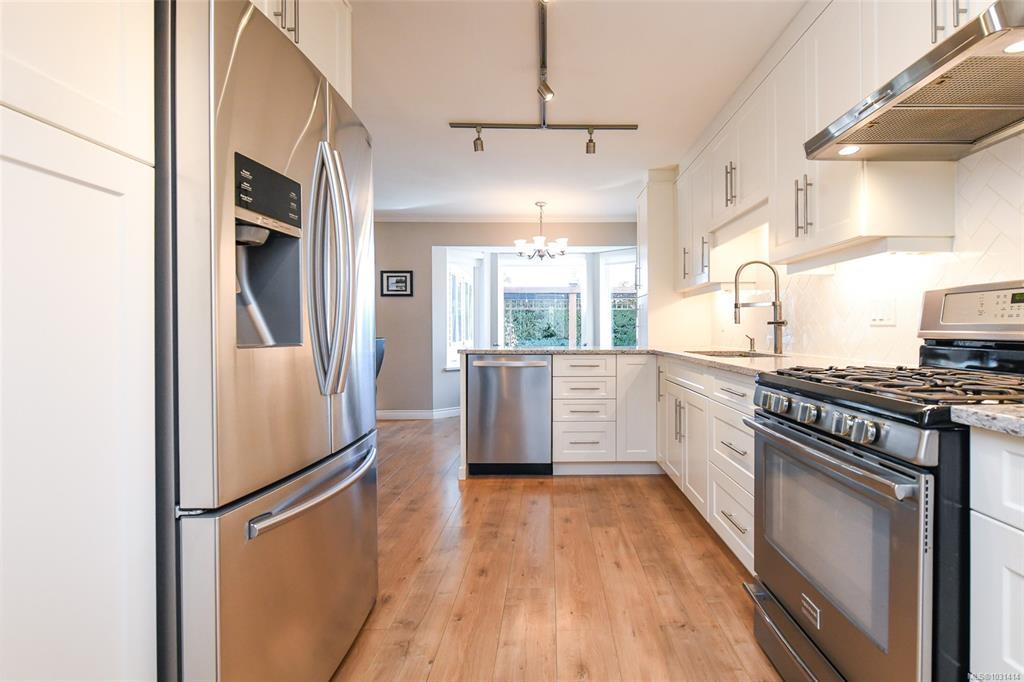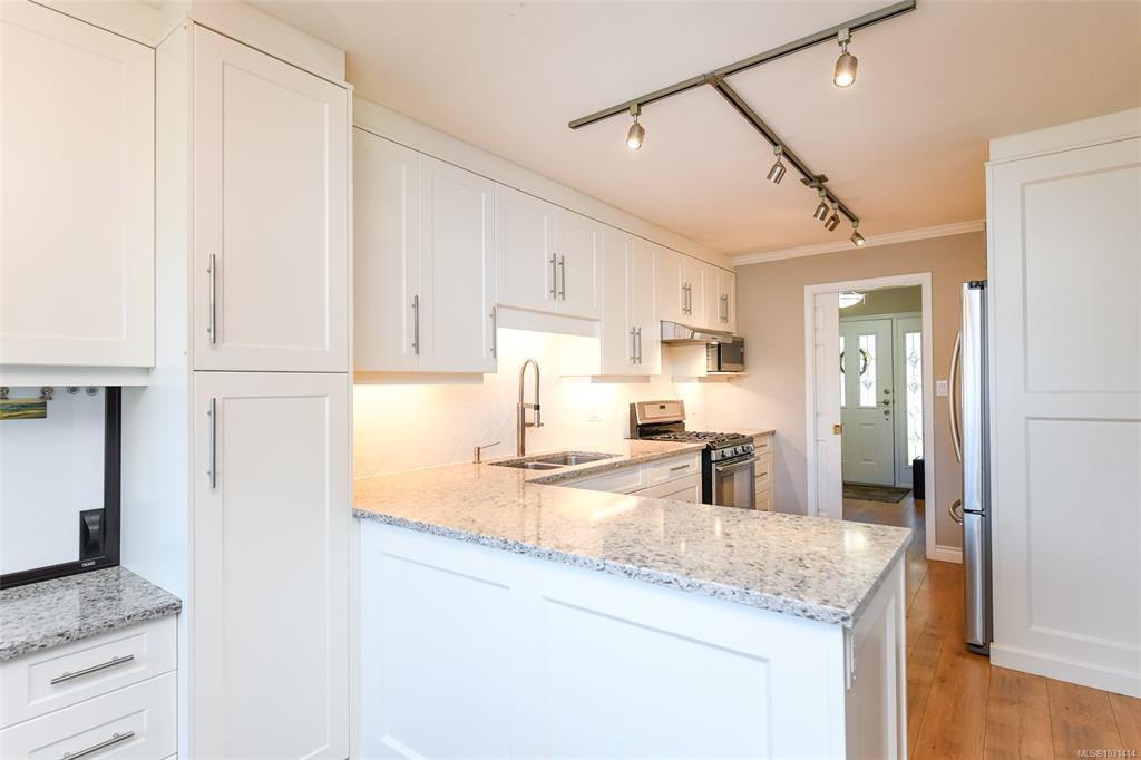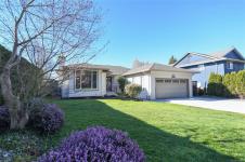 This immaculately cared for 1,734 sqft rancher is perfectly situated in a sought-after location adjacent to a park & within walking distance to shopping, walking trails & downtown Comox. This recently renovated home features a sunny kitchen with crisp white cabinetry, quartz countertops and stainless appliances, including a gas range. A breakfast nook flows into the adjoining family room, where French doors open to a fantastic four-season sunroom with vaulted, wood slat ceilings & opening skylights, professionally built with permits. The fabulous layout offers both a formal living room with a cozy gas fireplace & a separate dining room. The spacious primary bedroom includes a walk-in closet & 4-piece ensuite. Step outside to a private, sunny south-facing backyard complete with a patio & sunshades, perfect for relaxing or hosting. Garden enthusiasts will appreciate the greenhouse, garden shed with power & irrigation system front & back. RV parking! This lovely home is the whole package!