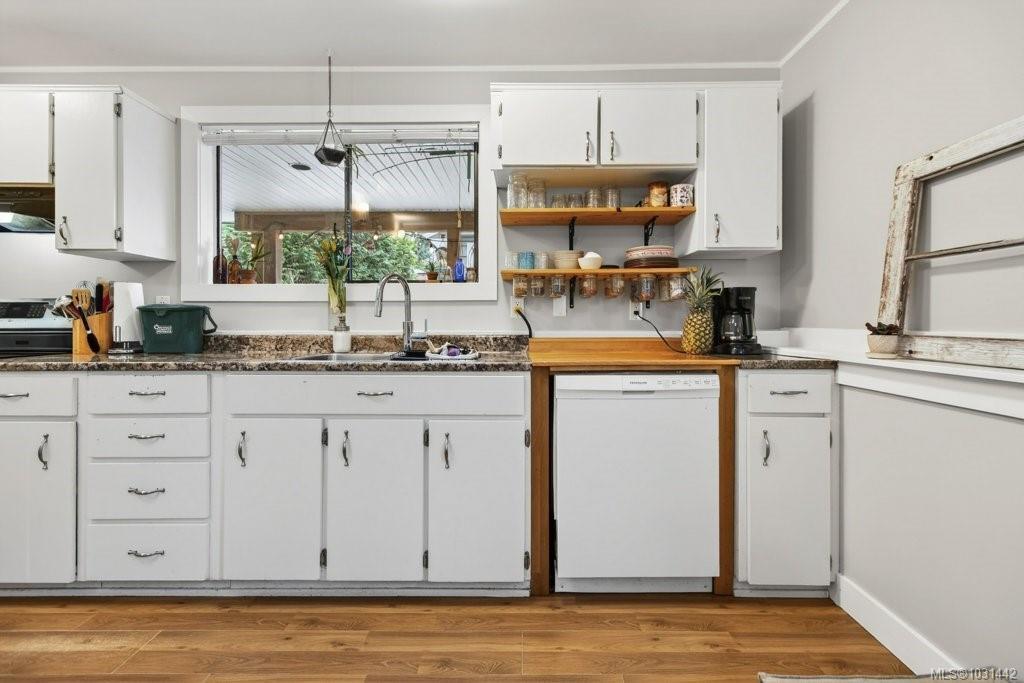 Located in one of the quietest cul de sacs on the edge of Puntledge Park this house offers one of the most diverse setups around. Upstairs you'll be pleasantly surprised with a large bright modern kitchen and the living and dining room areas offer a great spot to relax or entertain. Leading off the kitchen a large deck area overlooks the quiet back yard and detached garage. You'll find three well sized bedrooms and the Timber Frame entry provides a nice warn welcome as you approach the home. Downstairs offers the perfect layout for a multi generational setup or for someone that wants some extra income and an additional guest area that's perfect for company or possibly students. There is a large covered patio off the lower level and you'll be pleasantly surprised to find rear alley access with lots of parking at both the front and the rear of the home. Whether you have lots of toys, cars or people this home can handle it! All of this and walking distance to downtown Courtenay too!