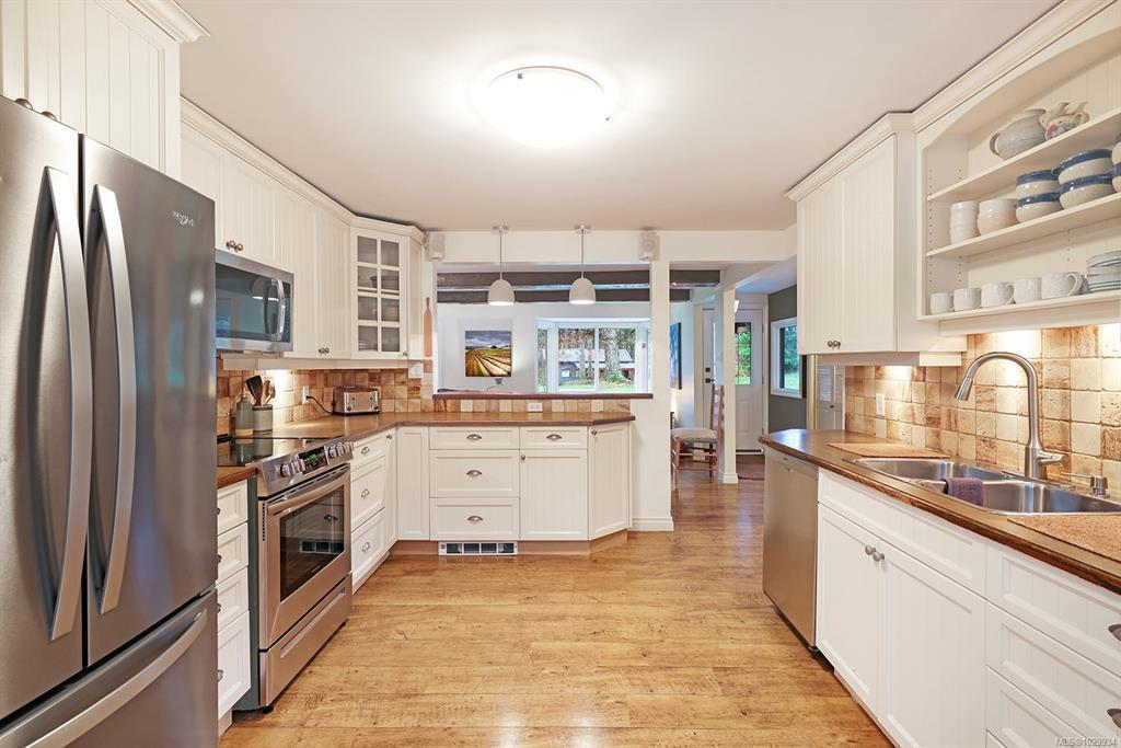 Introducing 2138 & 2142 Left Road, a rare and enchanting storybook property set on a lush and private 2.18-acre parcel in North Courtenay, just five minutes from the beach. The property is immersed in towering trees and dappled sunlight, offering exceptional privacy and a peaceful connection to nature. Rich in character and West Coast charm, the 2,525 sqft main residence, built in 1950, has been lovingly updated while preserving its timeless appeal. A charming gable exterior opens into a cozy, cottage-inspired interior with exposed timber beams, warm wood finishes, 3 bedrooms, 2 bathrooms, loft and a grand river rock fireplace anchoring the main living space. Currently a successful Airbnb, it offers flexibility and income potential. A 1,182 sqft second home, built in early 2025, features timber framing, oversized windows, woodstove, loft-style primary, and spa-like freestanding bath. Complete with a bunkie and a large 41' x 25.5' workshop, it's time to own your dream property!