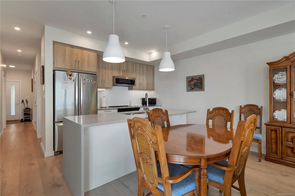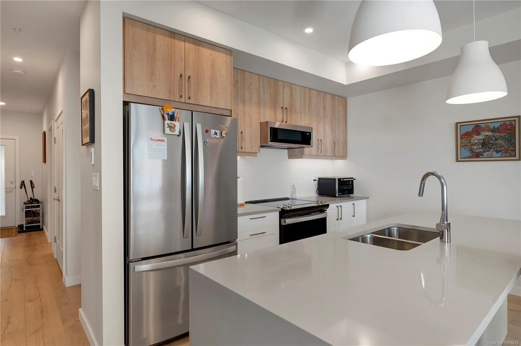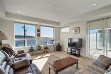 Experience coastal living at its finest in this stunning 2 bedroom + den ocean view condo. Designed with open concept living in mind, this home offers a bright, modern layout perfect for both relaxing and entertaining. The stylish kitchen features quartz countertops, stainless steel appliances, and sleek modern cabinetry, flowing seamlessly into the main living space. Low-maintenance laminate flooring adds durability and contemporary appeal throughout. The spacious primary bedroom is a true retreat, complete with a deluxe ensuite featuring dual sinks and a beautifully tiled walk-in shower. The versatile den makes an ideal home office, guest space, or cozy reading room. Enjoy breathtaking ocean views and effortless condo living in this exceptional home.