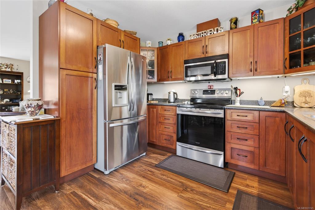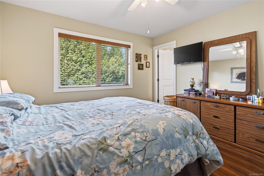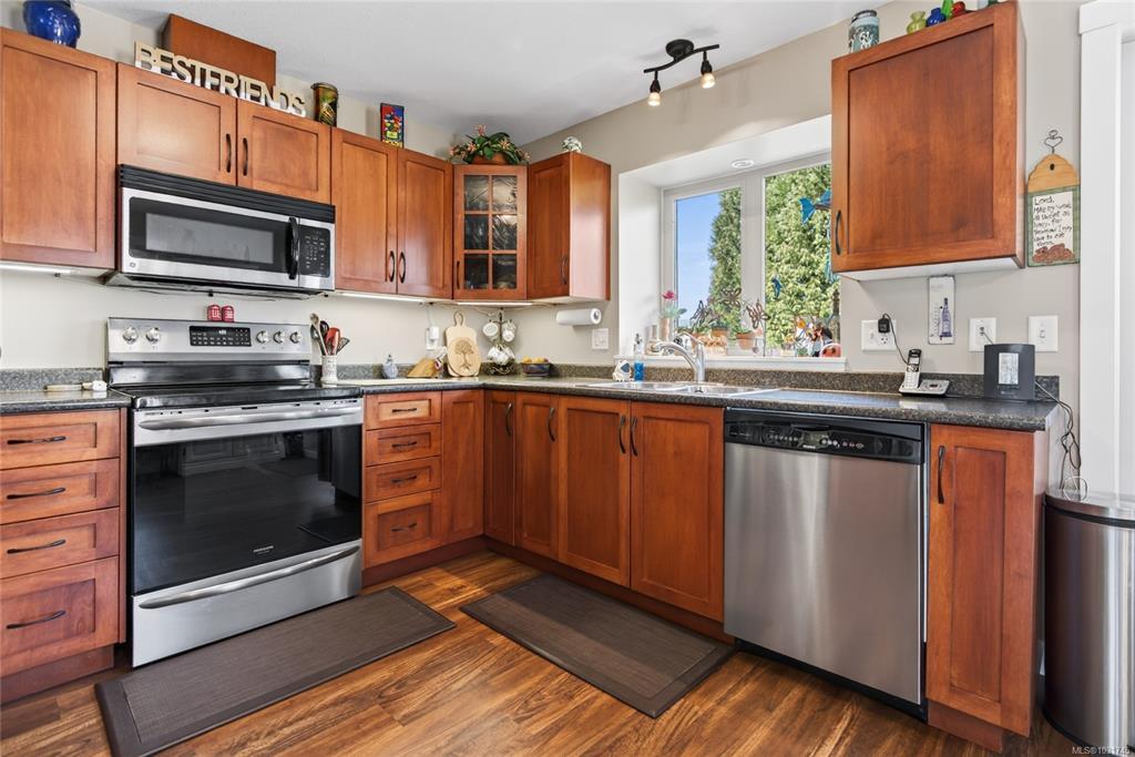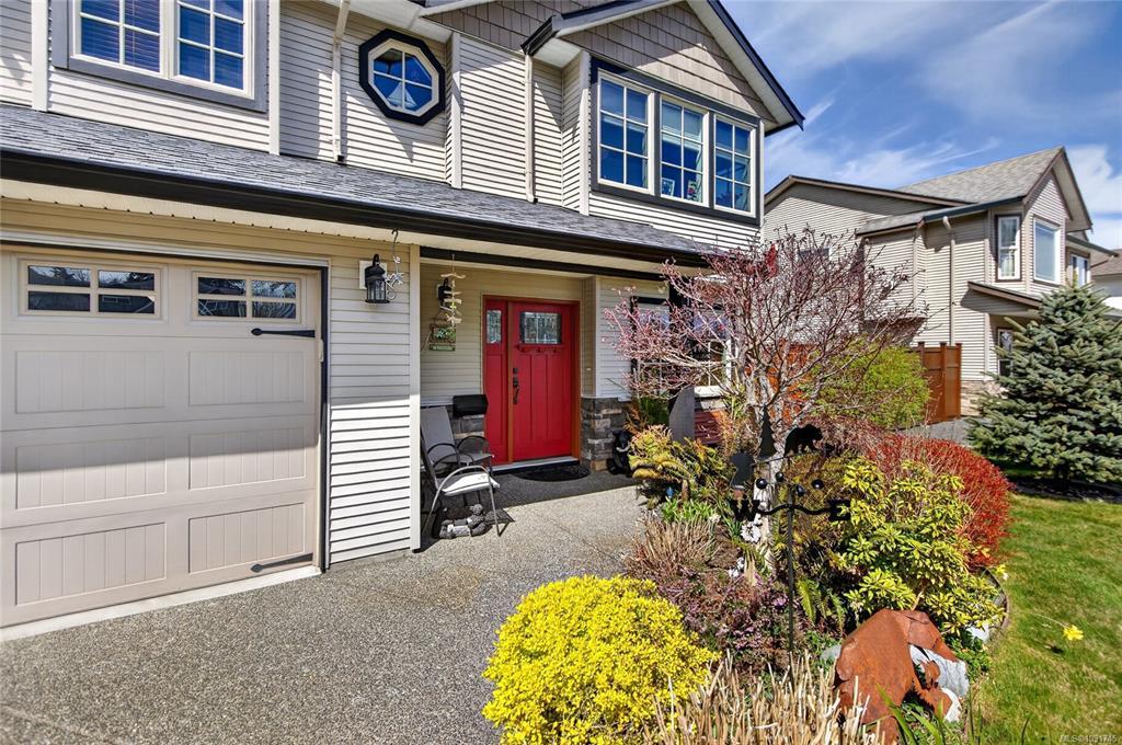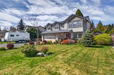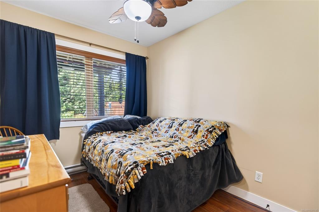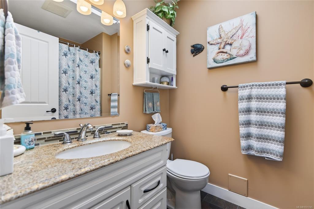 Tucked away on a quiet cul-de-sac in Courtenay City, this well-cared-for 1,894 sq ft split-level home offers comfort & versatility. Built in 2008, it features 4 bedrooms, 3 bathrooms, plus a den/office, ideal for families or working from home. Slate flooring enhances the entry & bathrooms, while the bright living area includes a natural gas fireplace. The lower level offers a rec room with wet bar, bedroom & bathroom offering suite potential. Outside enjoy a private, fully fenced 0.16 acre yard with plenty of sun exposure, mature evergreens, raised garden beds, two sheds, a patio & a deck with mountain views. Double garage providing plenty of storage space plus extra parking area for the RV, boat or other toys. The subdivision has underground services. The home is situated across from a community park with a children's playground. Just steps to a walking trail. Less than a ten minutes walk to amenities including the mall, grocery store, liquor store, restaurants & movie theatre.