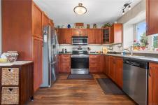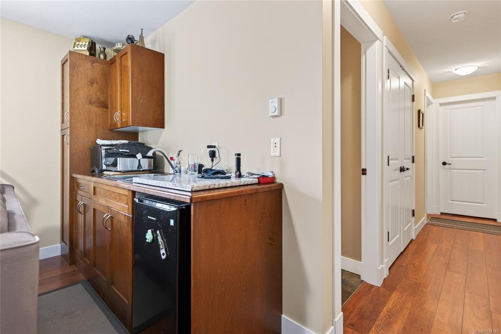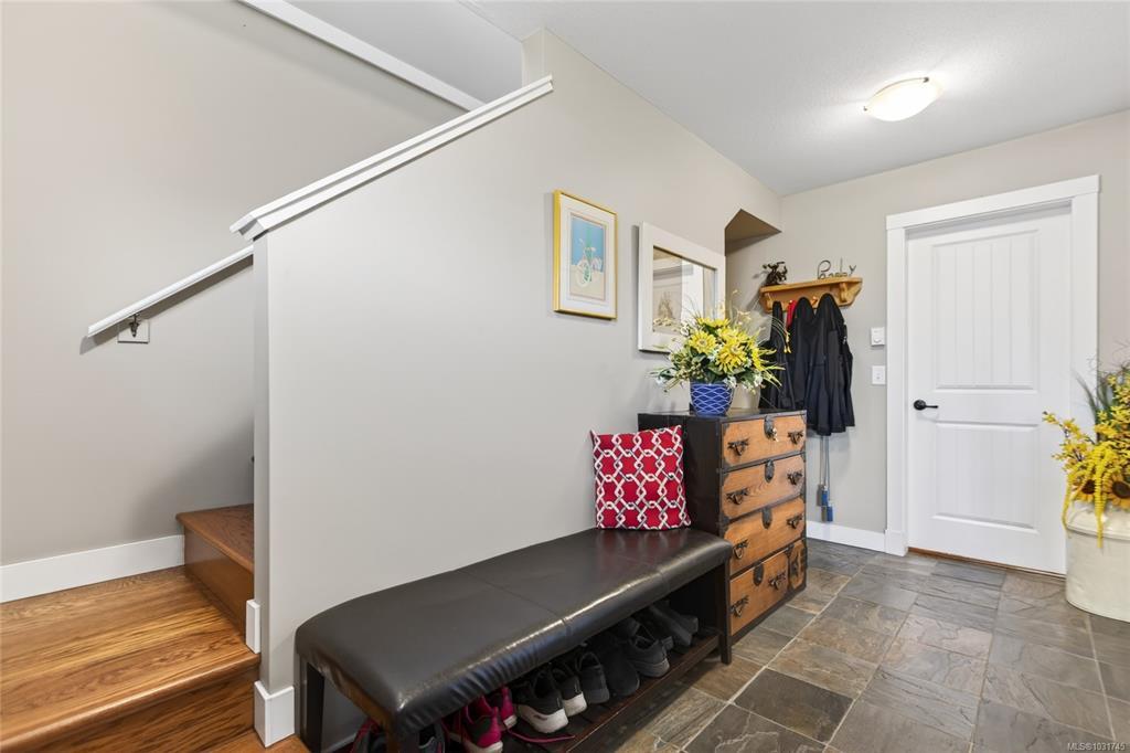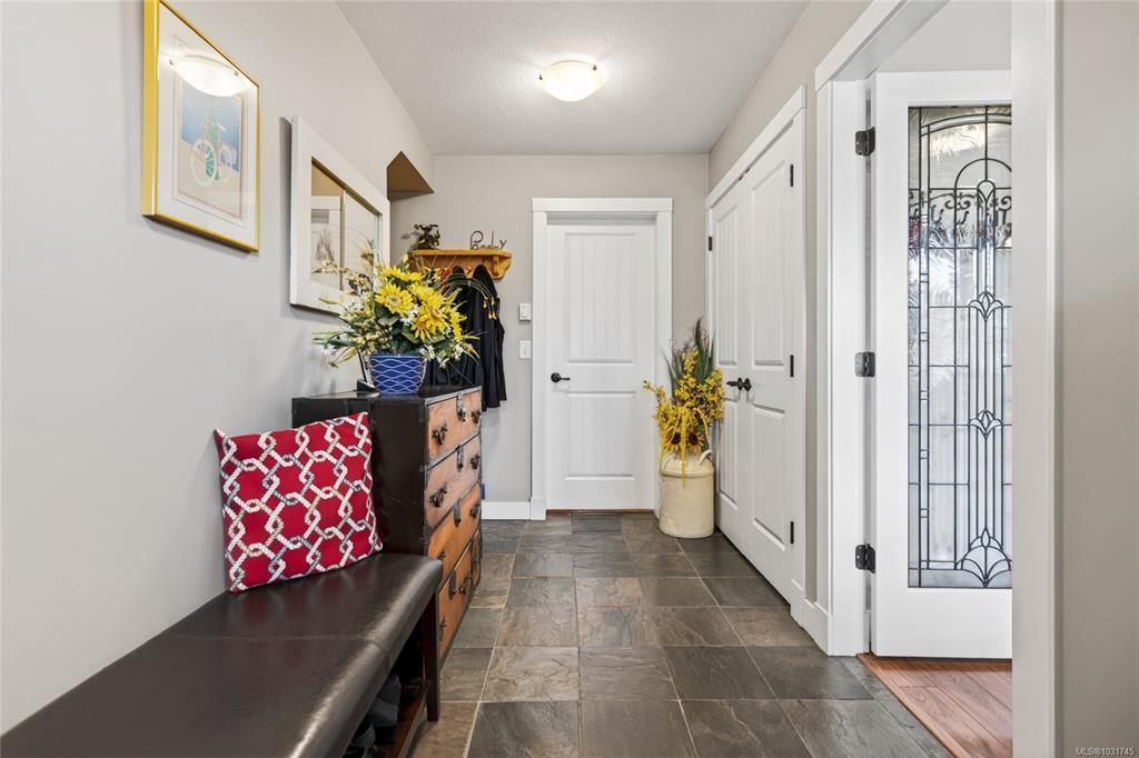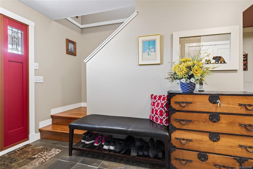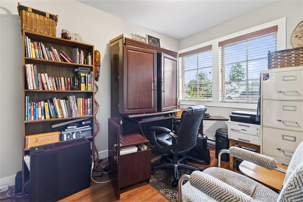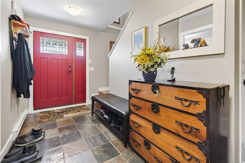 Tucked away on a quiet cul-de-sac in Courtenay City, this well-cared-for 1,894 sq ft split-level home offers comfort & versatility. Built in 2008, it features 4 bedrooms, 3 bathrooms, plus a den/office, ideal for families or working from home. Slate flooring enhances the entry & bathrooms, while the bright living area includes a natural gas fireplace. The lower level offers a rec room with wet bar, bedroom & bathroom offering suite potential. Outside enjoy a private, fully fenced 0.16 acre yard with plenty of sun exposure, mature evergreens, raised garden beds, two sheds, a patio & a deck with mountain views. Double garage providing plenty of storage space plus extra parking area for the RV, boat or other toys. The subdivision has underground services. The home is situated across from a community park with a children's playground. Just steps to a walking trail. Less than a ten minutes walk to amenities including the mall, grocery store, liquor store, restaurants & movie theatre.