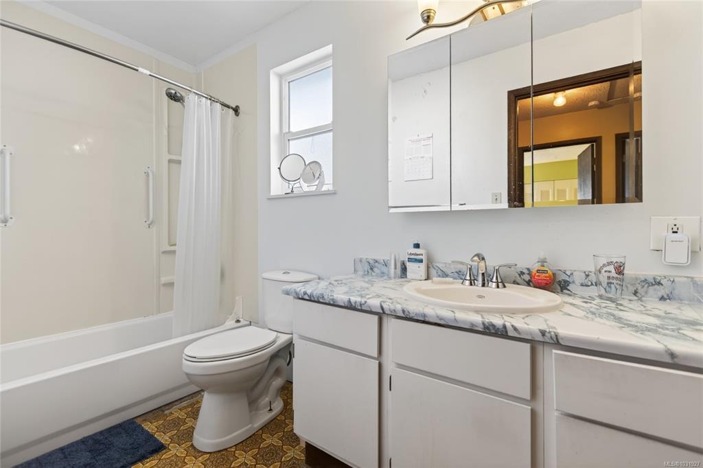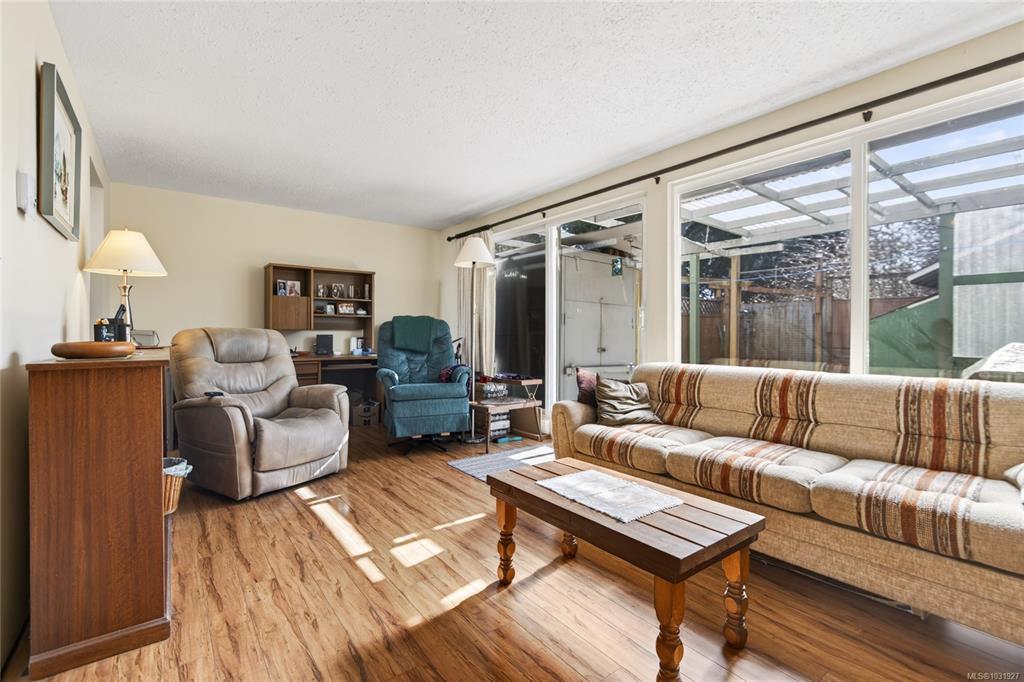 Welcome to Evergreen Estates, where you will find convenient and affordable living with low fees. This family orientated community is the perfect choice for families, first time buyers or down sizers. The home is located close to schools, parks and Courtenay's downtown shopping and restaurant core. The upper level has 3 generous bedrooms and a full bath, and on the lower level you will find a second bath, in house laundry, kitchen, dining, and a huge bright living room that opens up to the back yard and garden area through double sliding glass doors. You will find tons of storage both inside and outside of the home with a large front storage area and a huge stand alone shed in the back. This is a close community where people share a community garden in the front of the complex. Book a showing of your new home today!